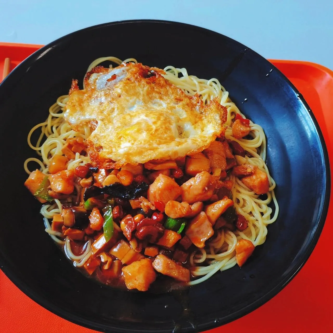 这里提供多样化的菜品,包括辣子鸡套餐、油泼面、土豆粉、东北风味的锅包肉和炸地瓜条、烧烤、石锅拌饭、凉皮凉面等。早餐选择丰富,有酱香饼、酒酿元宵、牛奶燕麦粥和煎饼。
