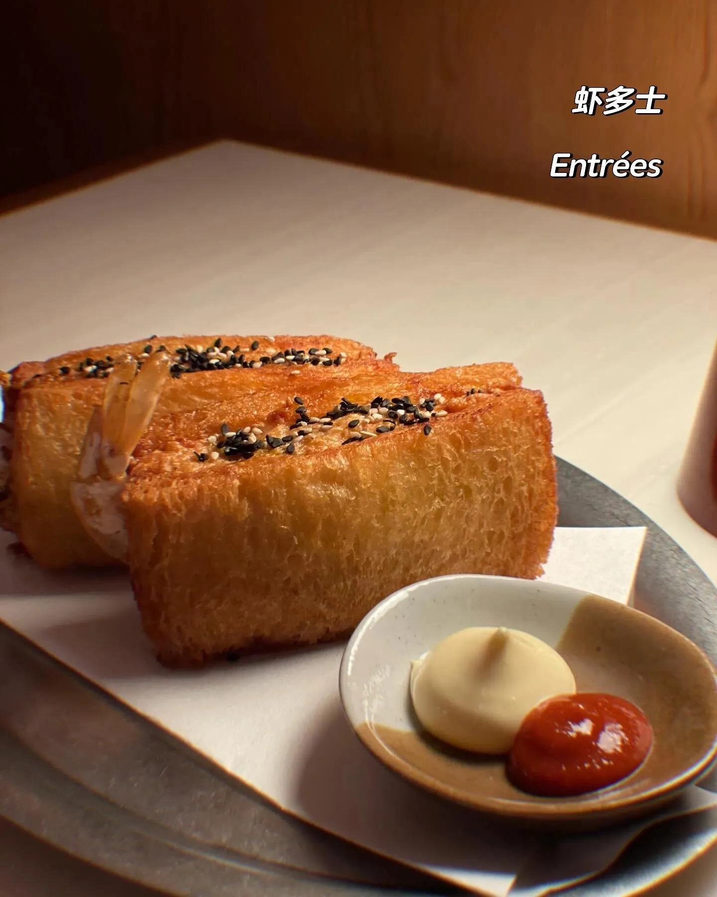 除了酒,建民号的小吃也让我印象深刻。我点了腊肠拼盘(128港币)和虾多士(98港币)。特别是腊肠拼盘,灵感来自传统酒吧的冷肉拼盘,选用了香港本地西营盘三兴隆的时令腊肠和腊肉,搭配自制泡菜,味道绝佳。配上两杯鸡尾酒,简直完美。能在一家特色鸡尾酒吧吃到如此精致的小吃,真的让人难以抗拒。我深深感受到店家对香港传统美食的用心演绎和发扬,强烈推荐大家去品尝。