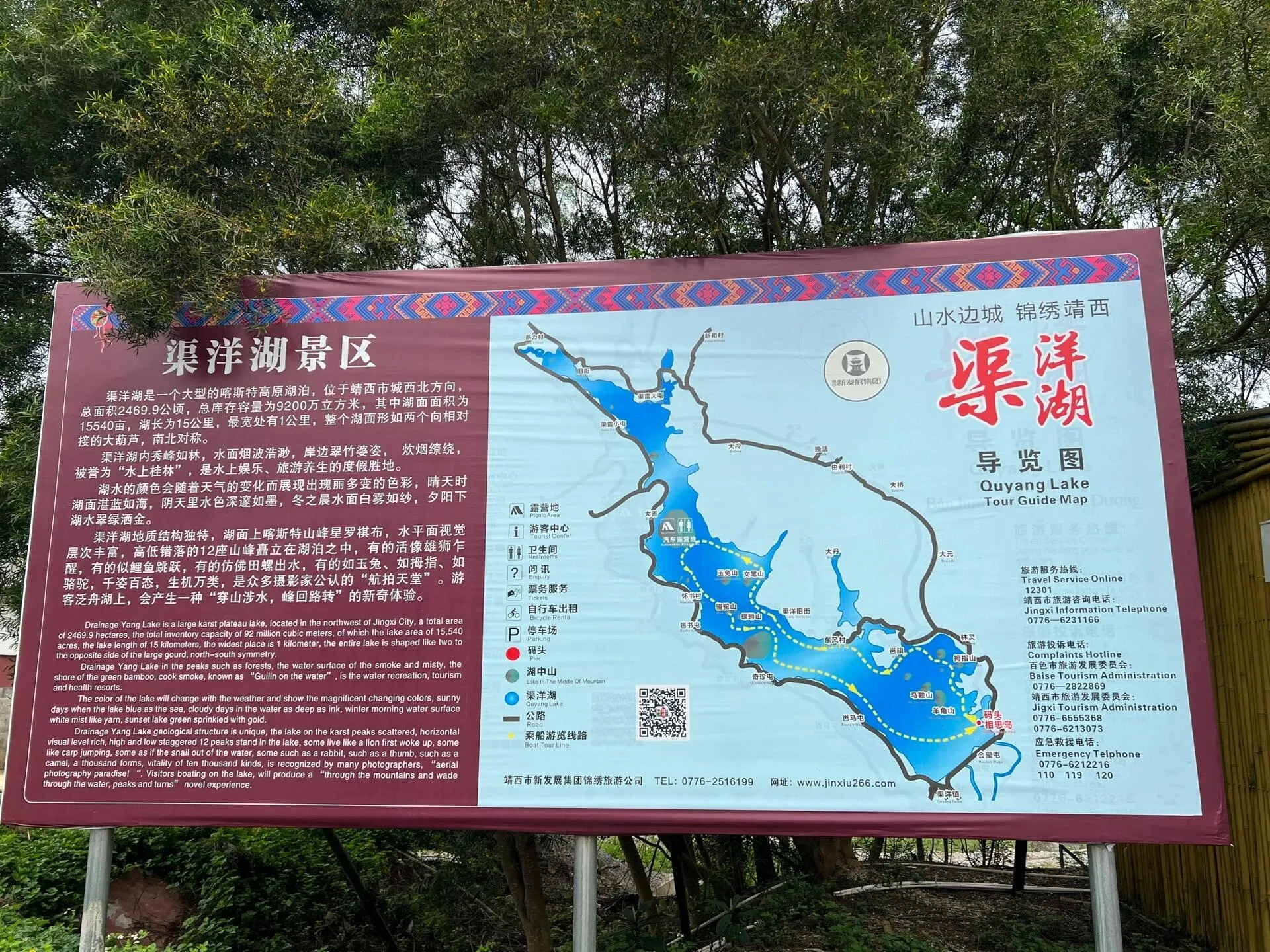 渠洋湖是一个位于广西百色市靖西市城西北28公里的大型喀斯特高原湖泊水库。虽然网上对渠洋湖的评价褒贬不一,但我们这次去是考虑到本来就要从靖西自驾到百色市区,抱着“来都来了”的心态去看看。