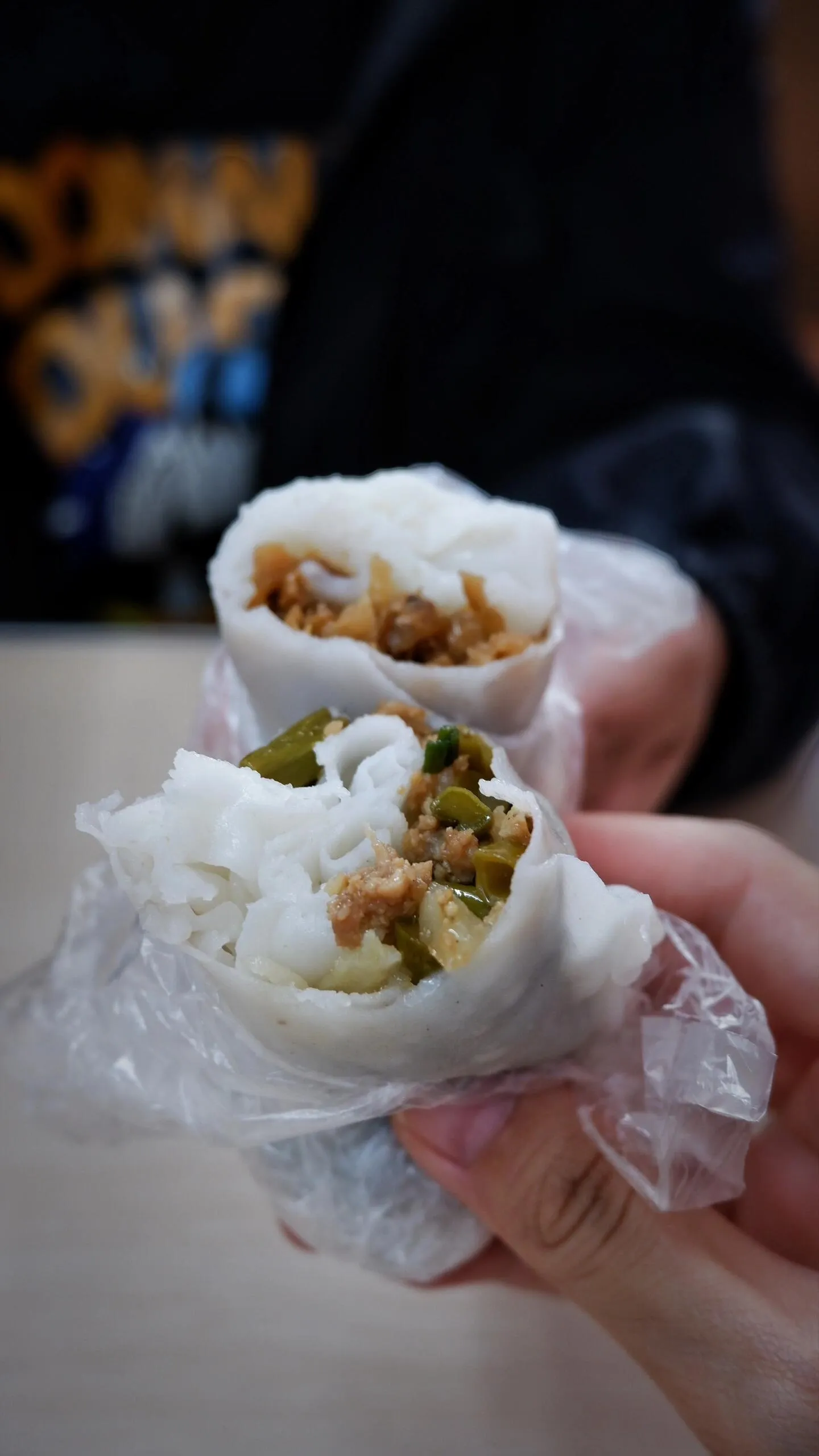 这家早餐店的肠粉非常出色。采用传统做法,没有花里胡哨的馅料。肠粉口感Q弹,内馅只有少许的肉沫,最后淋上香气四溢的炸蒜头油,非常满足。