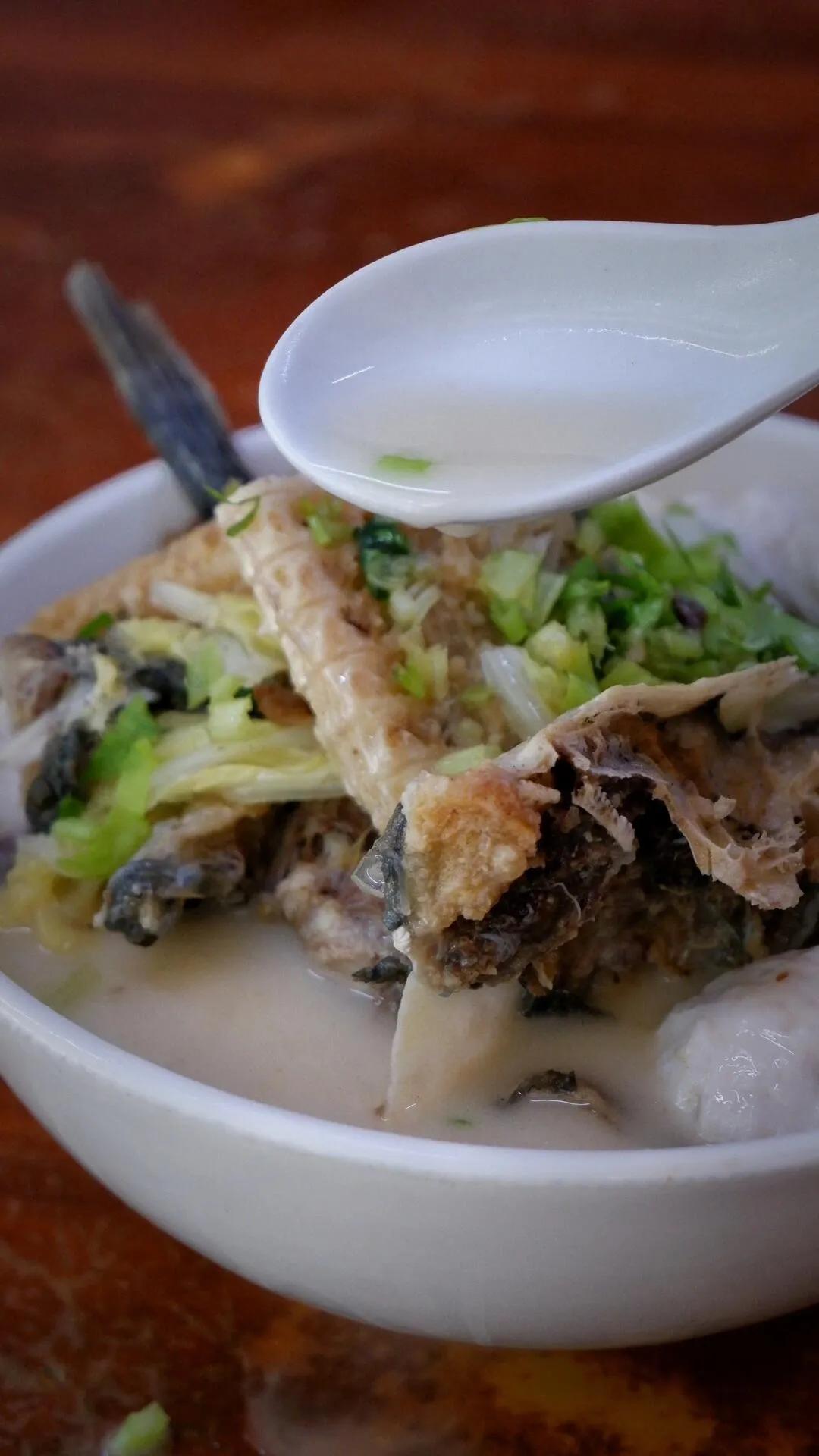 这家店的鱼头煮粉值得专程前来。鱼头先油炸再下去熬汤,熬出来的鱼汤奶白无比,鲜甜可口。不吃主食的可以直接点鱼头汤。