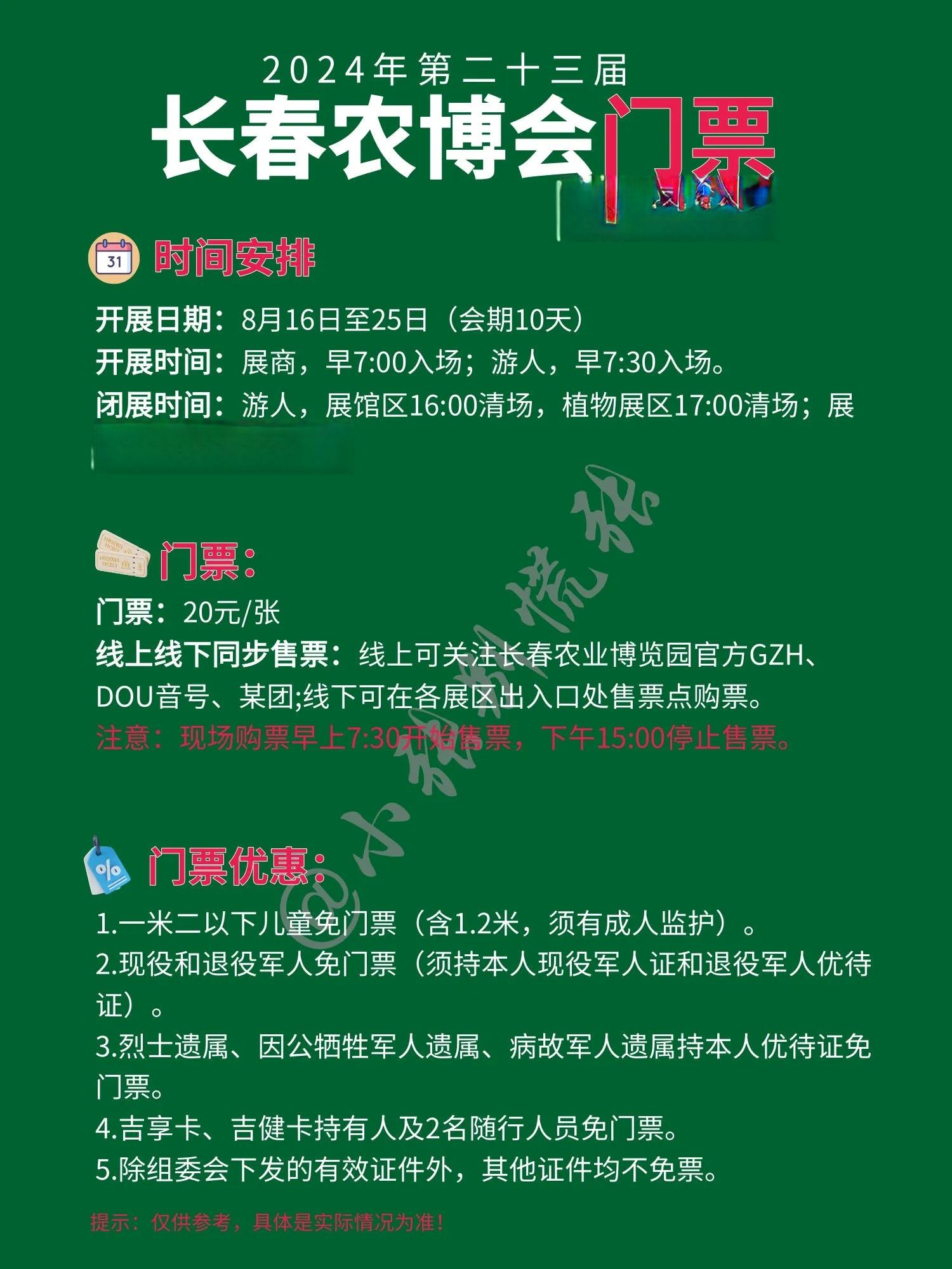 长春农博会又来啦!这个一年一度的农业盛会将于8月16日至25日在长春农博园举行,为期10天。开放时间为每天早7:30至17:00,门票20元/张。
