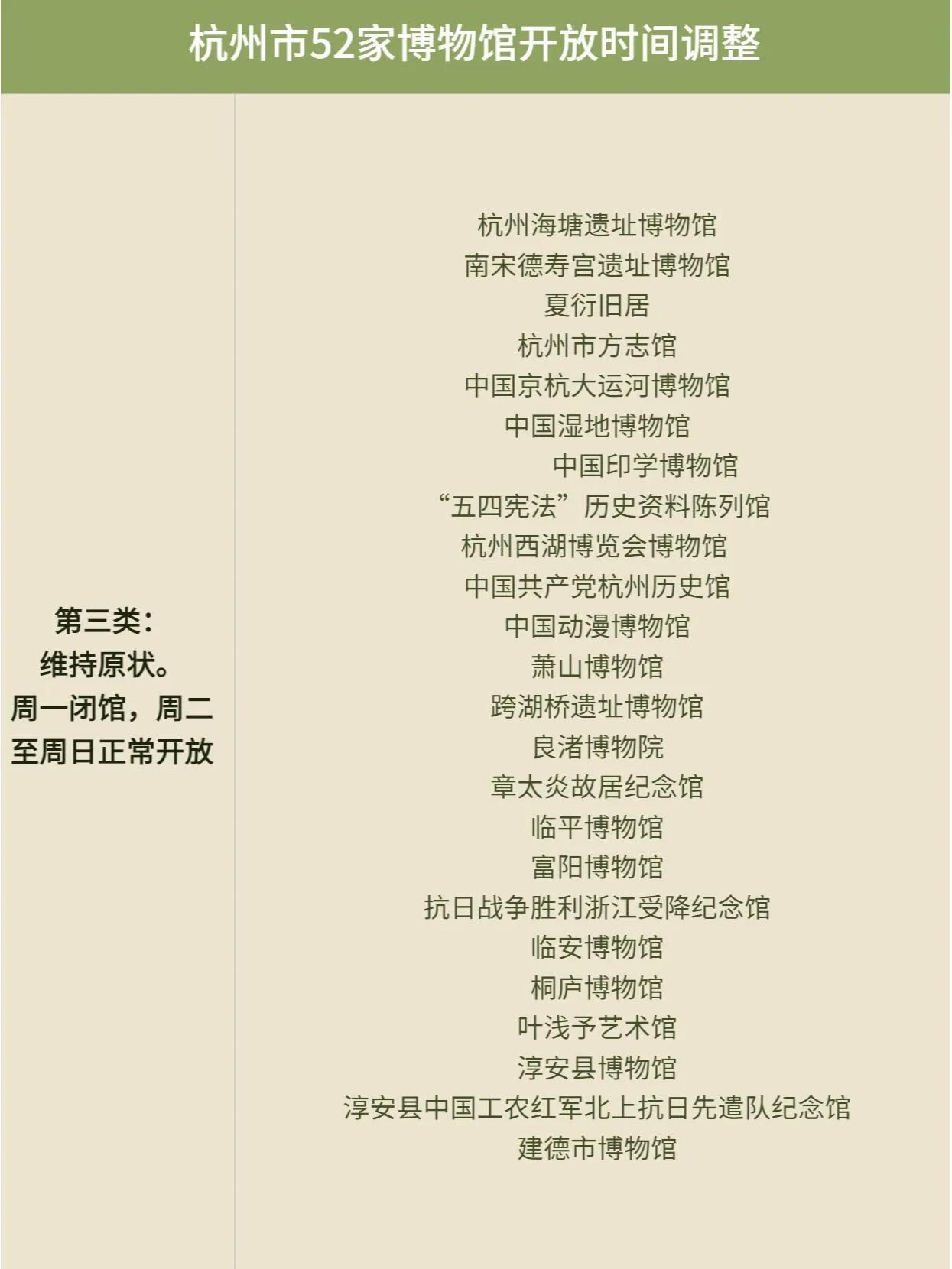 从7月31日开始,杭州市博物馆将实施新的开放时间调整。这次调整分为三类,充分考虑了不同博物馆的位置和规模。