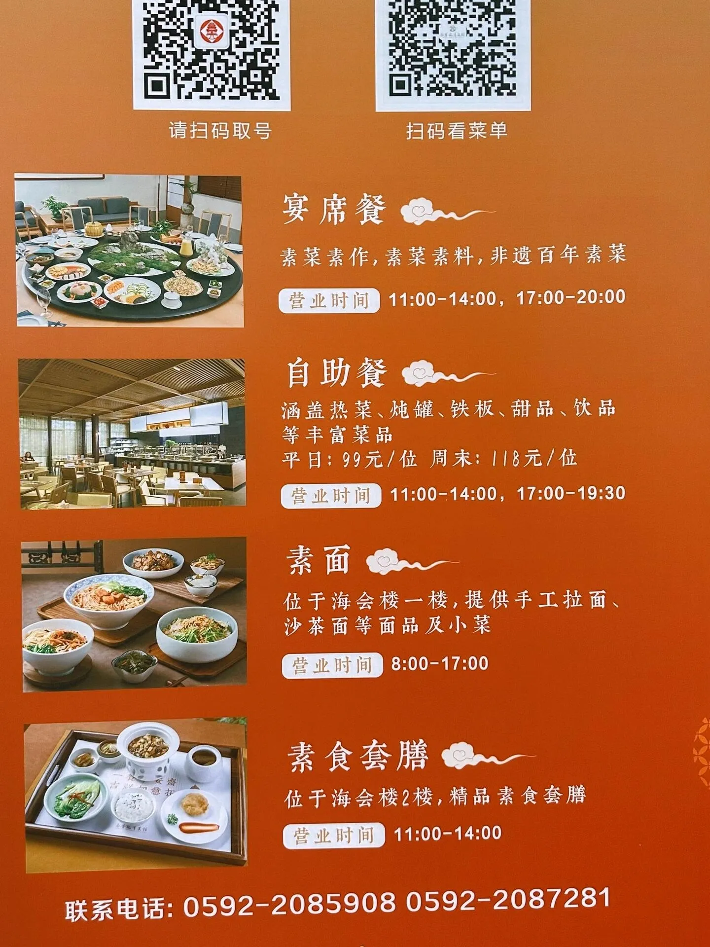 建议在高峰时段提前扫码排队。更多菜品和价格信息可以查看“厦门市南普陀素菜馆”公众号。