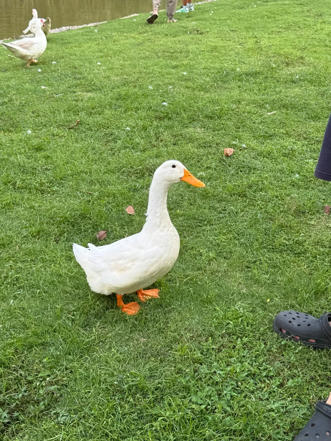 喂鸭子的具体位置在篮球场附近。从清华咖啡馆出发,往篮球场方向走,在篮球场旁有一条小路,沿着水边走就能看到鸭子。走到一片草坪湖边时,会看到很多小朋友在此喂鸭子。需要注意的是,要密切关注孩子的安全,保安会提醒游客红色嘴巴的鸭子比较凶猛。