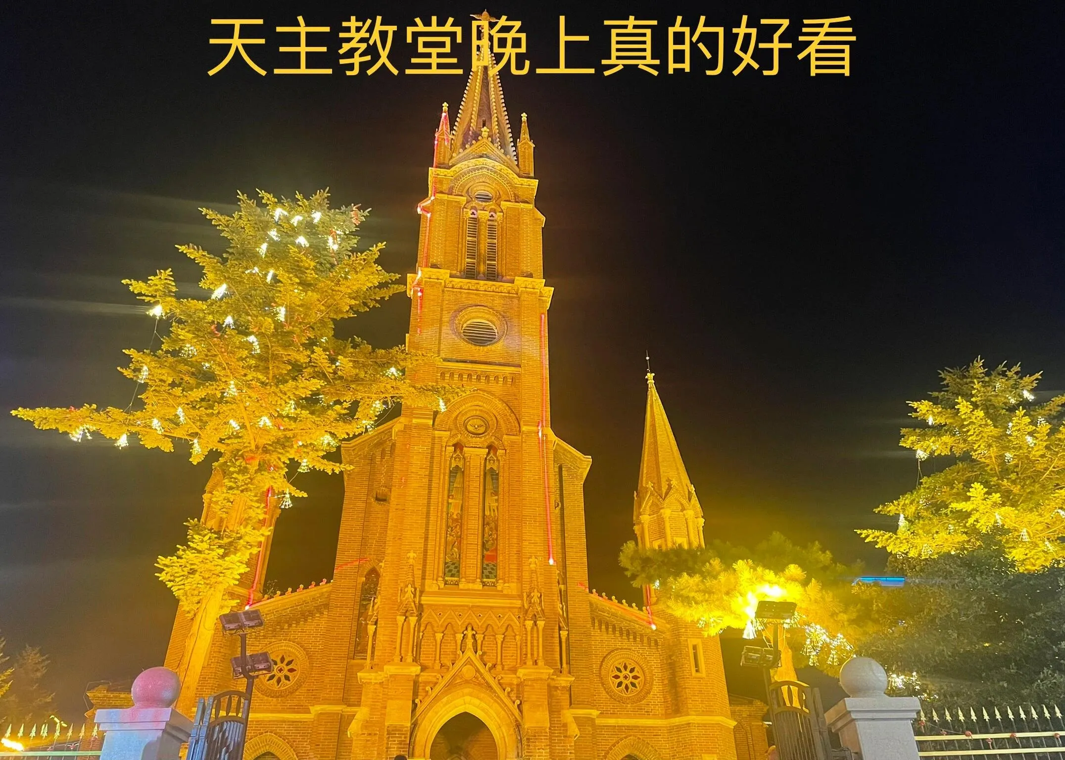 天主教堂仅白天开放,但夜景同样迷人。教堂前方是江边,有喷泉灯光秀,吉林大桥下还有现场歌手表演。