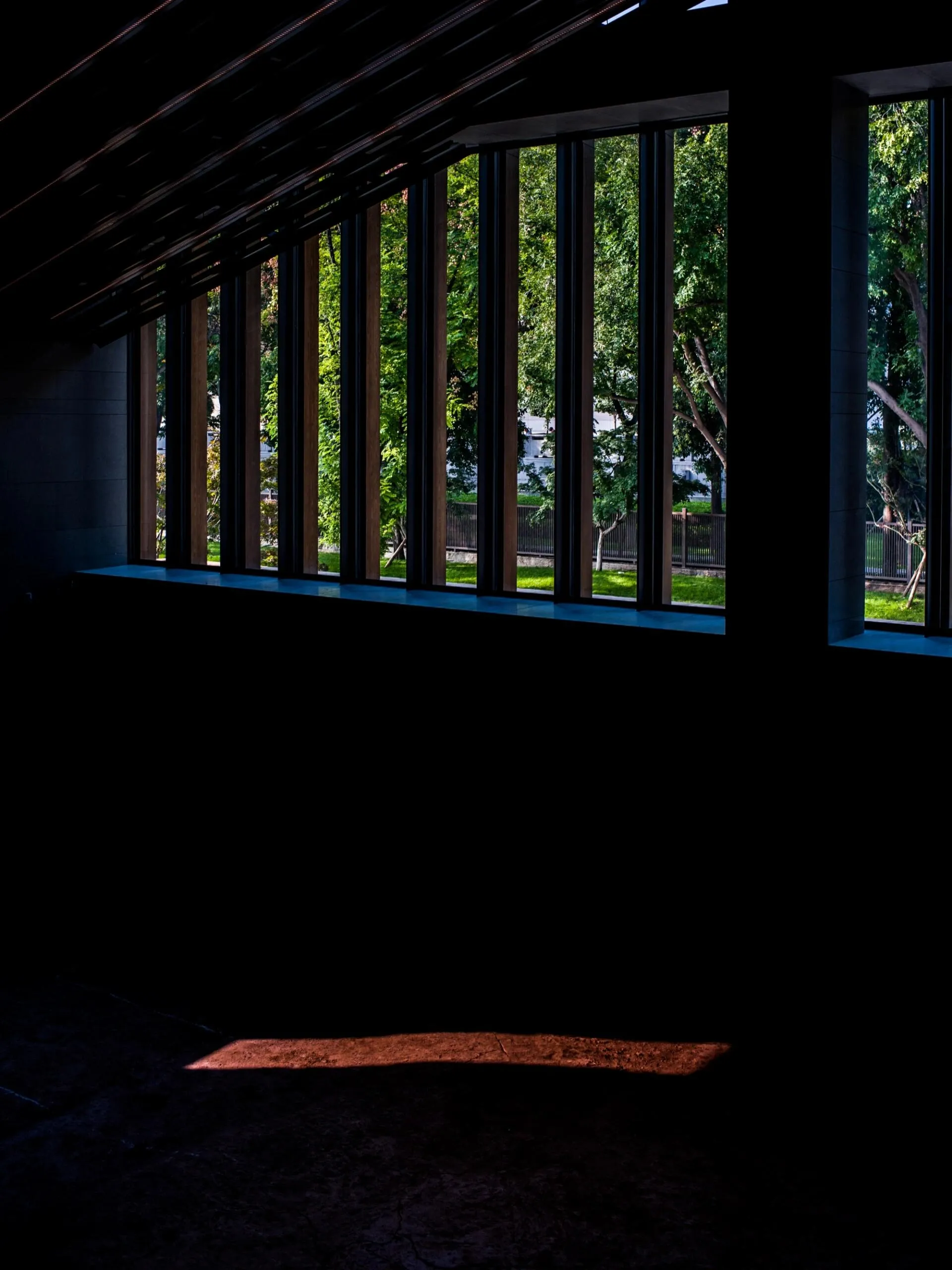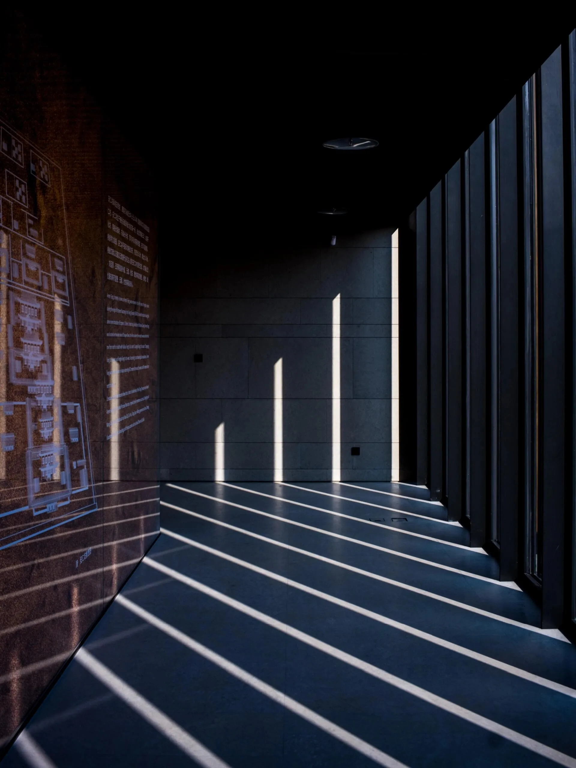 经过小雁塔遗址公园后,就能感受到遗址展示馆由外到内整体的空间感。进入馆内,在一层的每个角落,都能看到脚下的遗址:夯土、车辙和散落的碎瓦,阳光洒落,仿佛穿越时空。