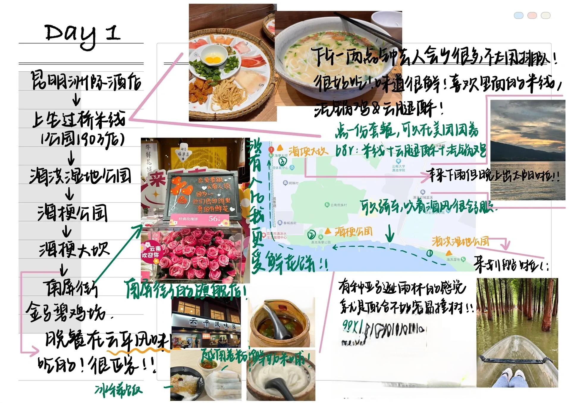 Day1: 酒店 - 上座过桥米线(1903店)- 海洪湿地公园 - 海埂公园 - 海埂大坝 - 南屏街