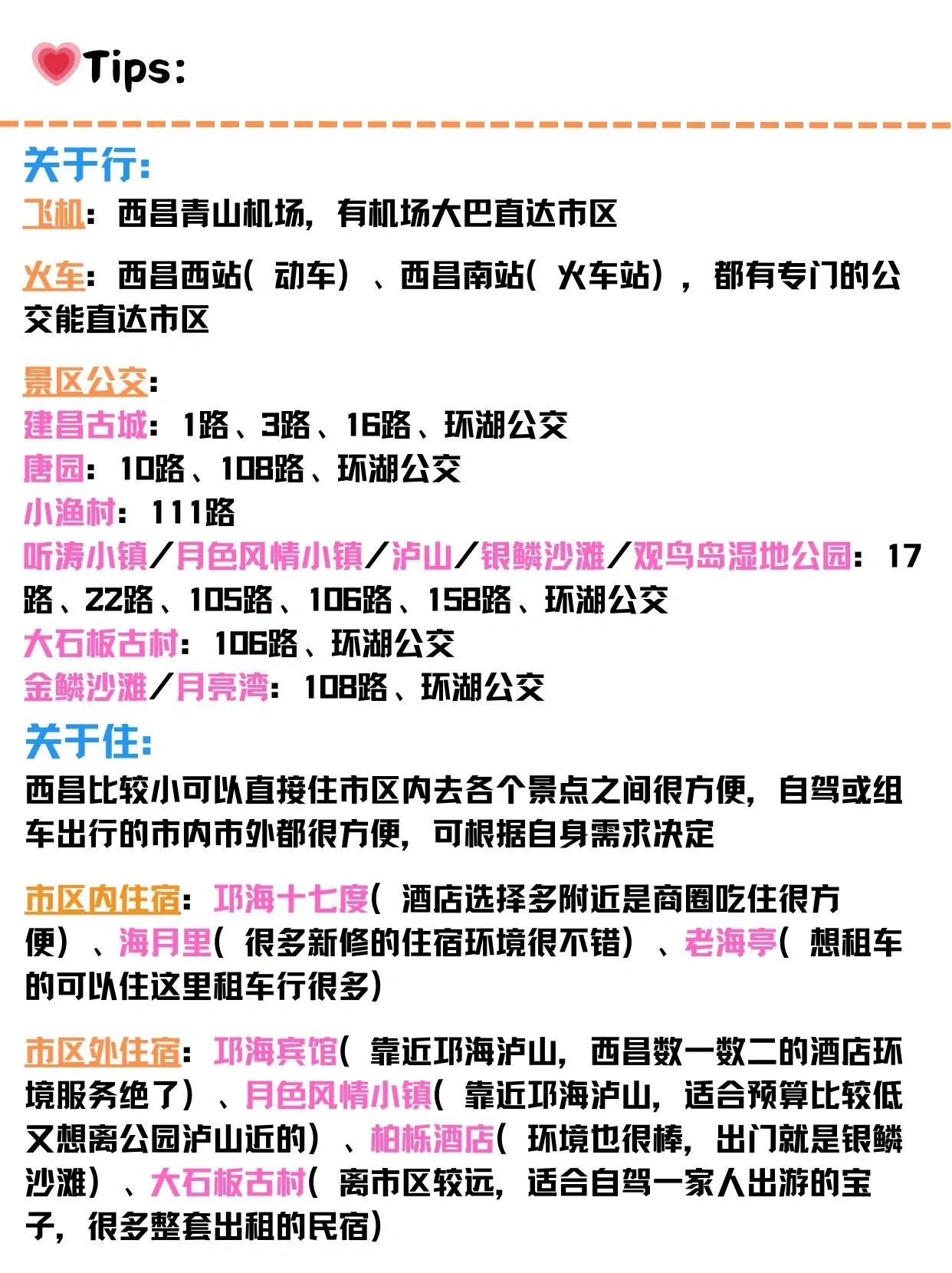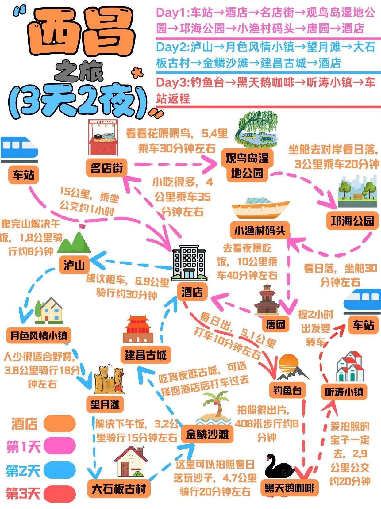 这份行程涵盖了西昌的自然风光和人文景观,既有湿地公园的生态美,又有古城古村的历史韵味,还能欣赏到美丽的日出日落。希望这个攻略能帮助大家更好地游览西昌!