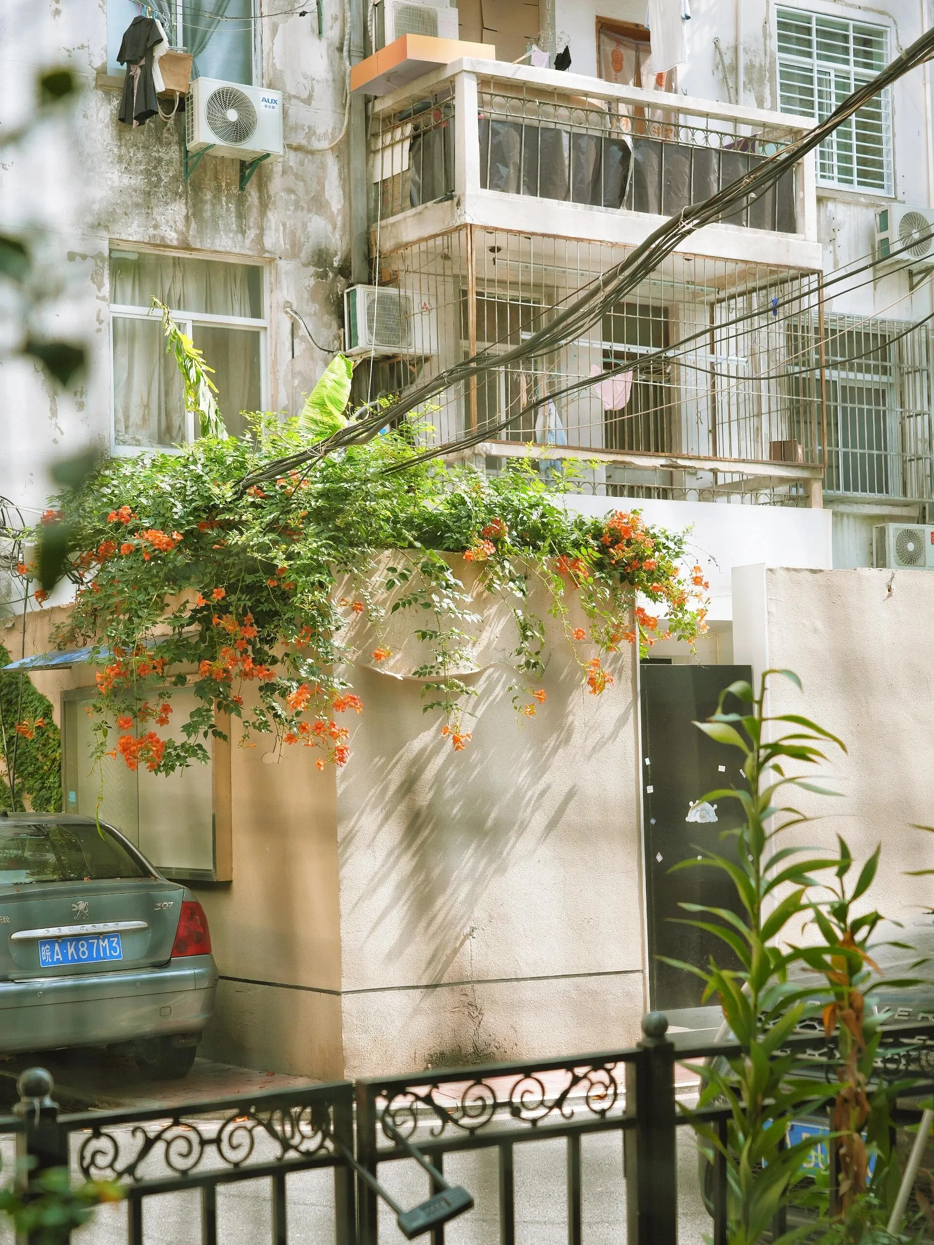 四牌楼是合肥老城区的一处地标,地处繁华市区,不少老房子依旧存在。从四牌楼地铁站C口出,就能看到这栋老洋房。夏季的凌霄花盛放在墙角,增添了几分氛围感。