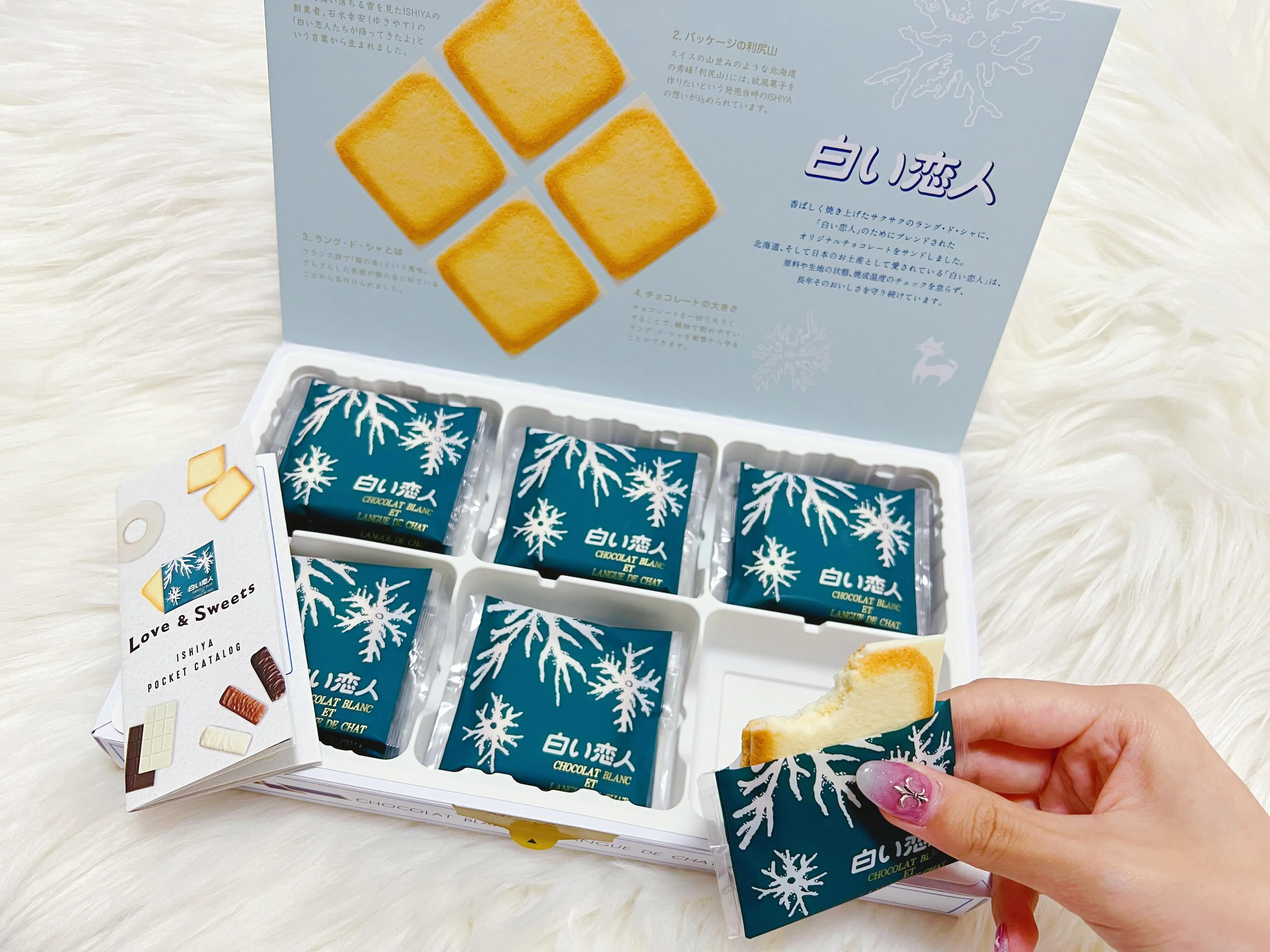 白色恋人是日本著名的伴手礼 ,售价1440日元。这款白巧克力夹心饼干由两片酥脆可口的曲奇夹着香甜浓郁的白巧克力。整体口感不错,但可能会因为过于甜腻而不适合大量食用。