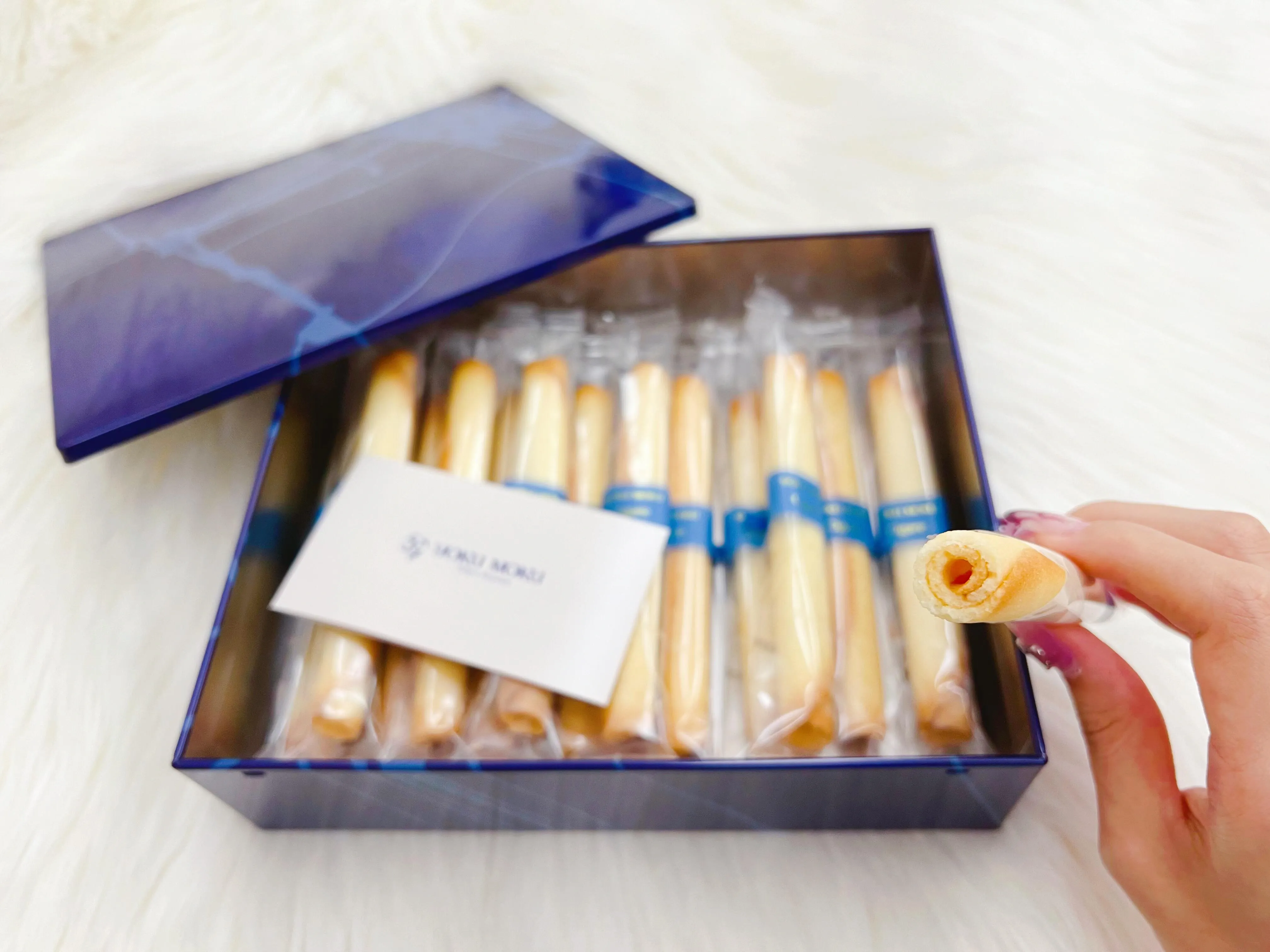 YOKU MOKU的黄油蛋卷售价1600日元 ,是一款令人惊艳的美味点心。这款蛋卷香气浓郁,口感酥脆但不硬,类似曲奇的质地。甜而不腻,让人回味无穷。