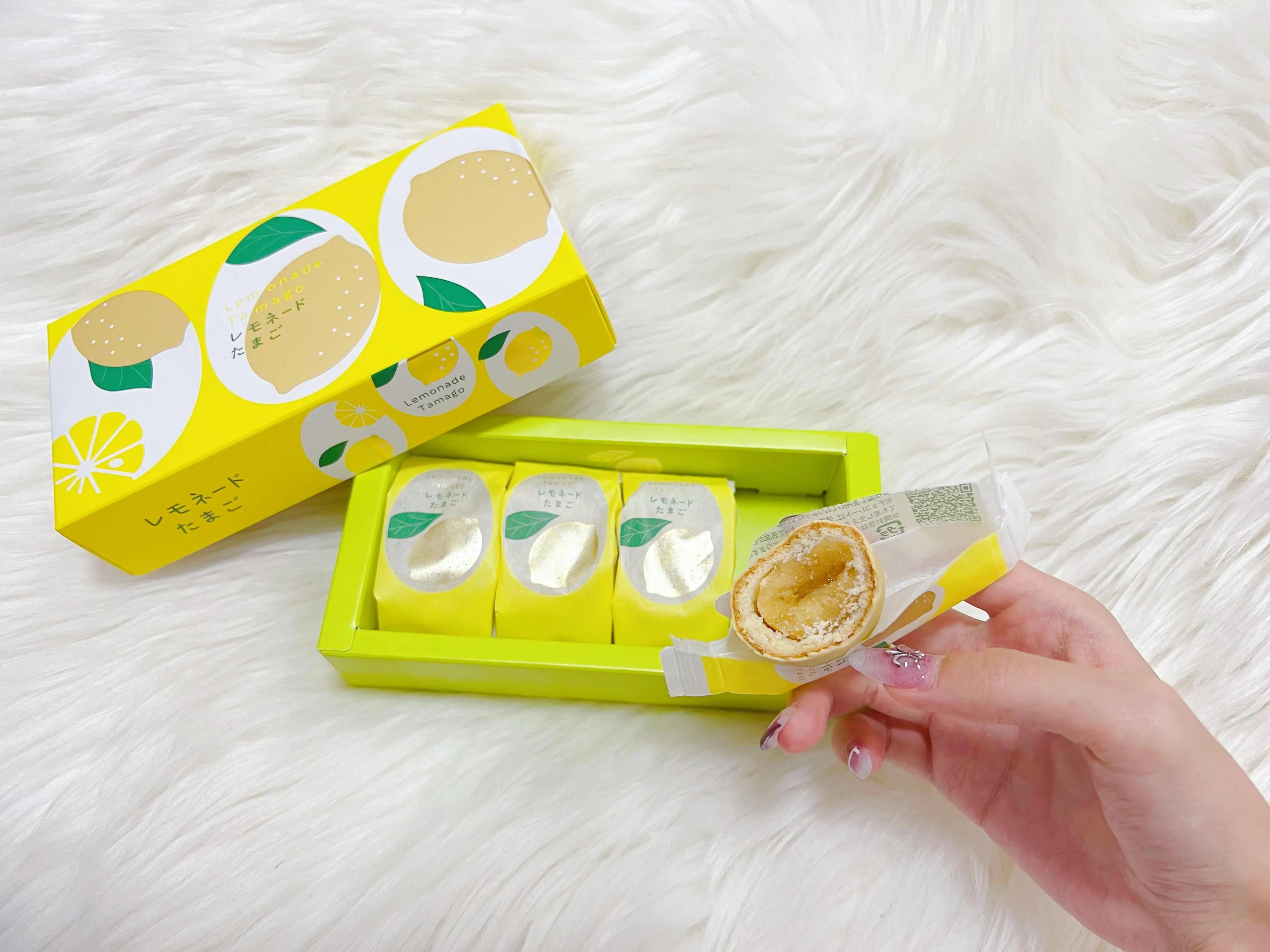 东京玉子本铺的柠檬水鸡蛋售价890日元 ,是一款非常新颖的点心。外观和包装吸引人,味道更是令人惊喜。这款点心口感和味道层次丰富。外壳是裹着巧克力的蛋糕,质地柔软;内部的球形芯层口感类似绿豆沙;最里层是柠檬果酱流心,还能吃到一些柠檬果肉。