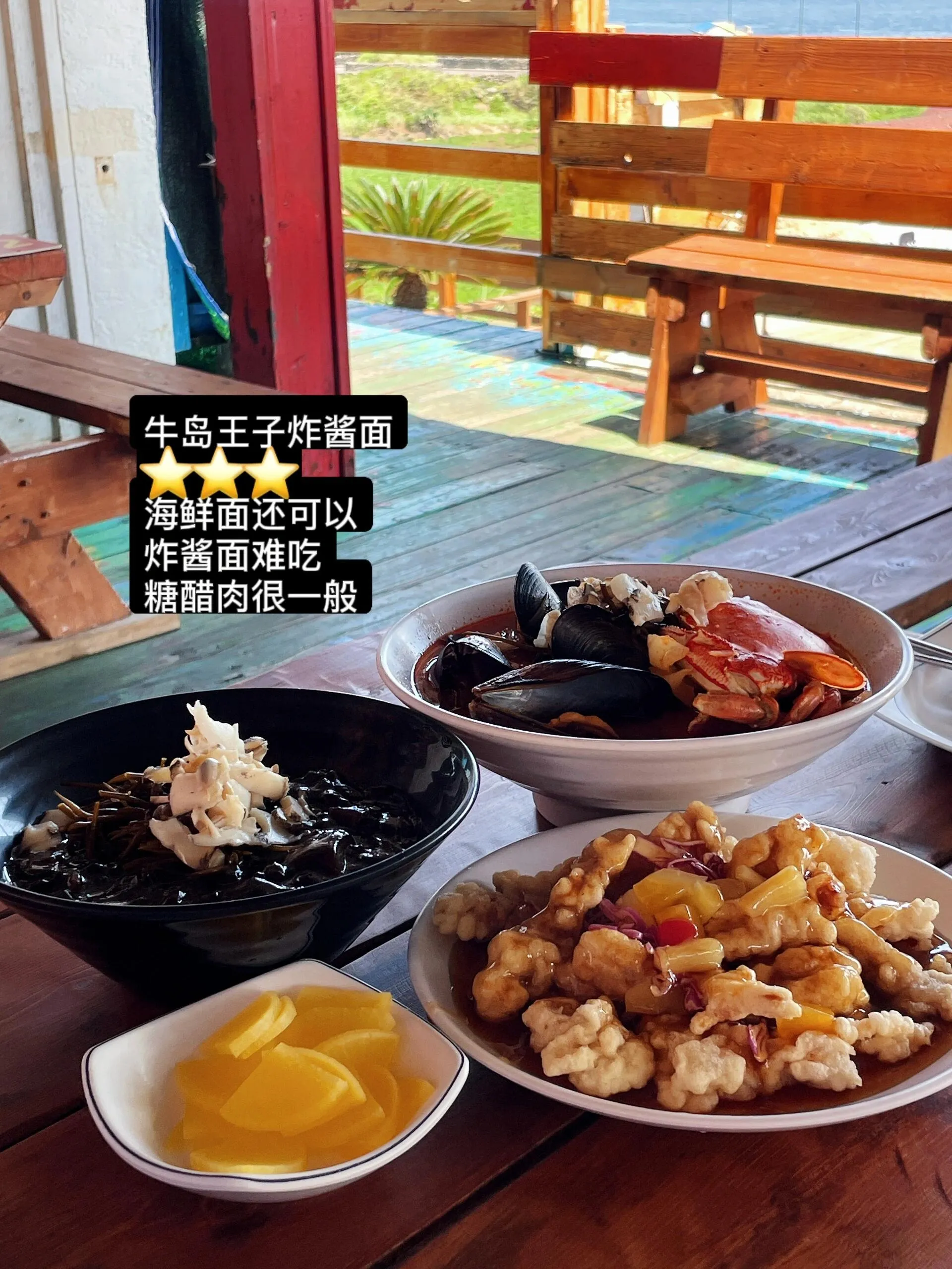 海鲜面值得一试,但炸酱面和糖醋肉表现平平。