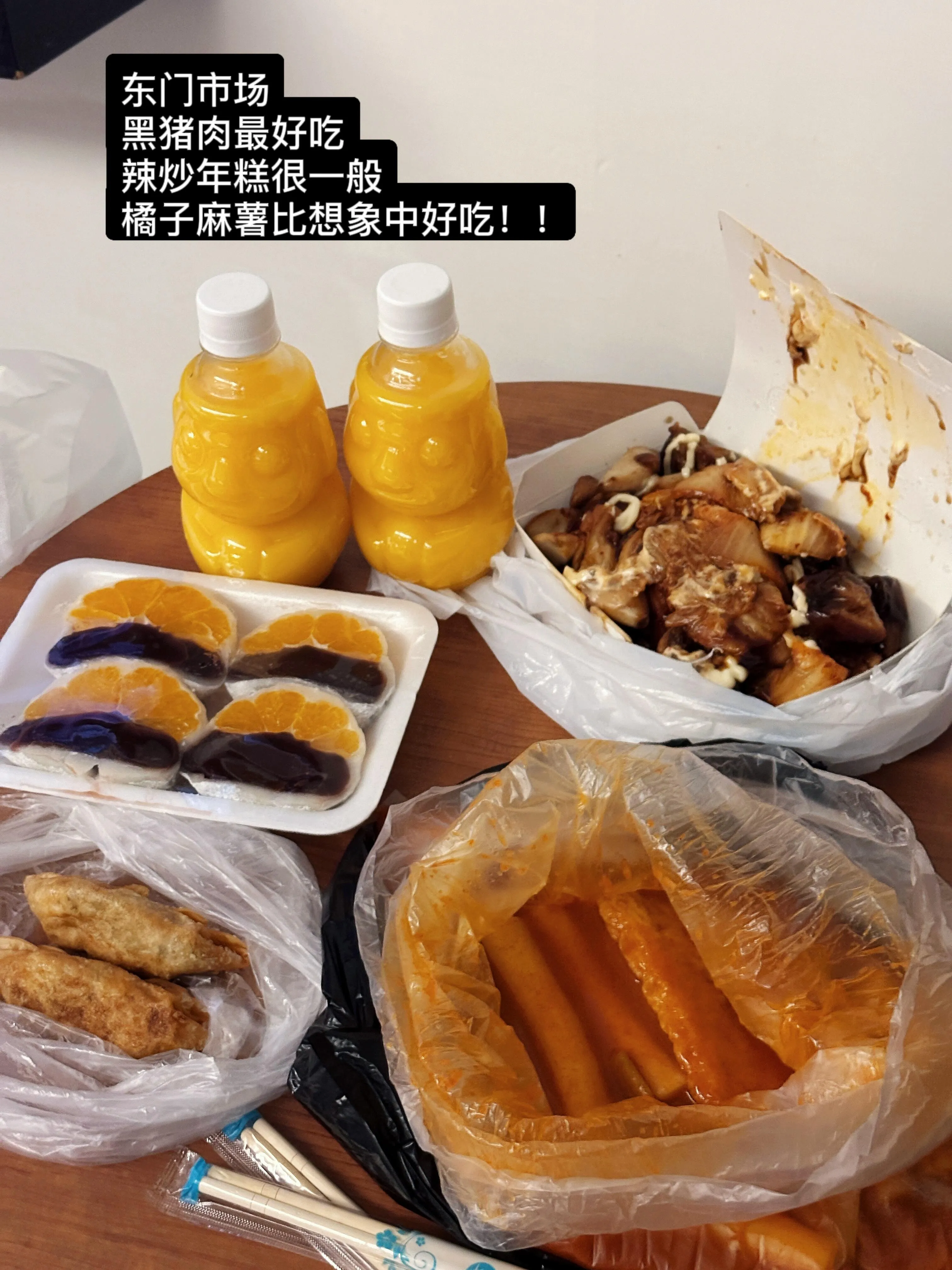 黑猪肉表现出色,橘子麻薯口感惊喜。辣炒年糕味道一般。