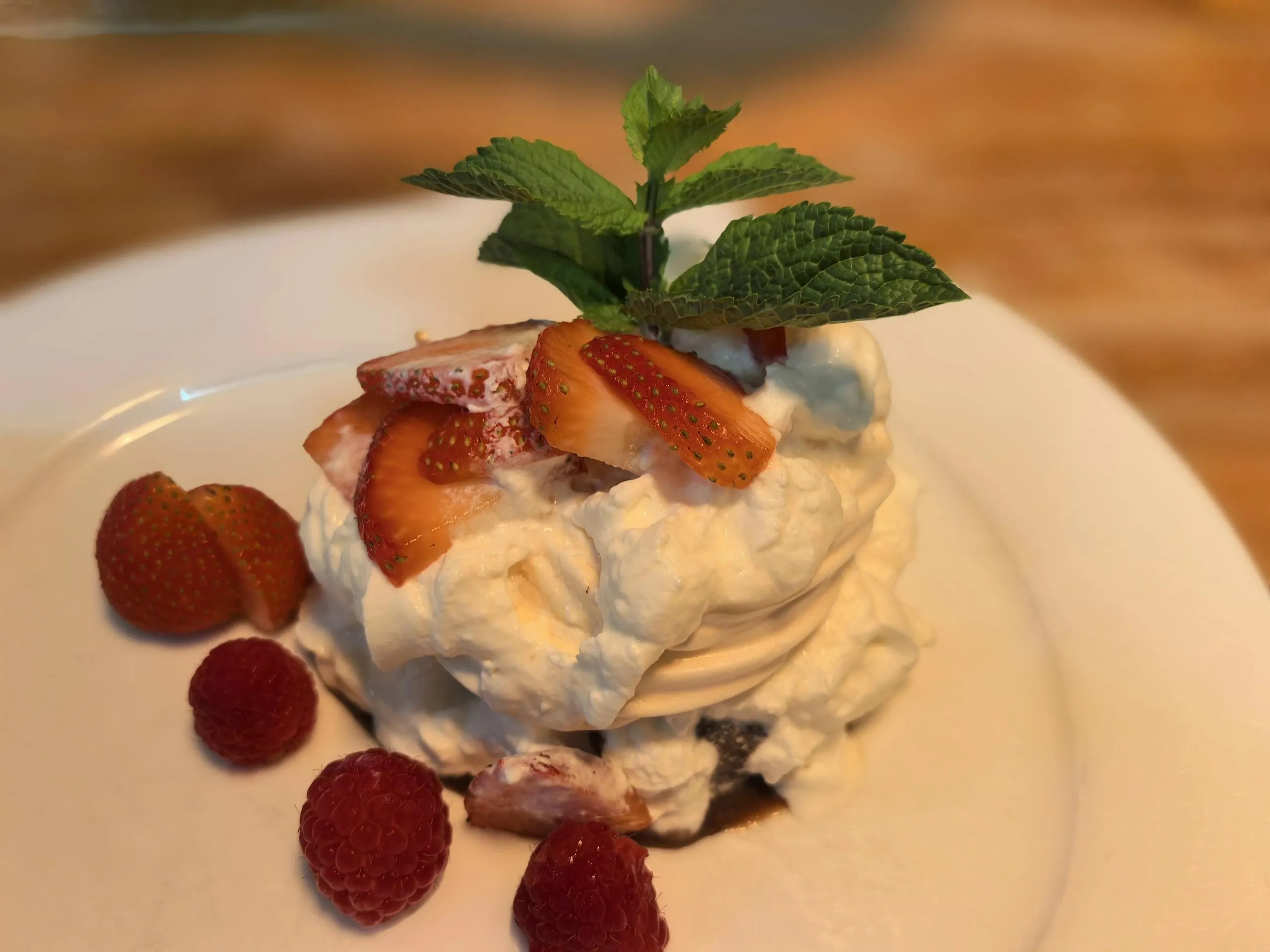餐后甜品中的莓果冰淇淋值得推荐,酸甜可口,能很好地解腻。