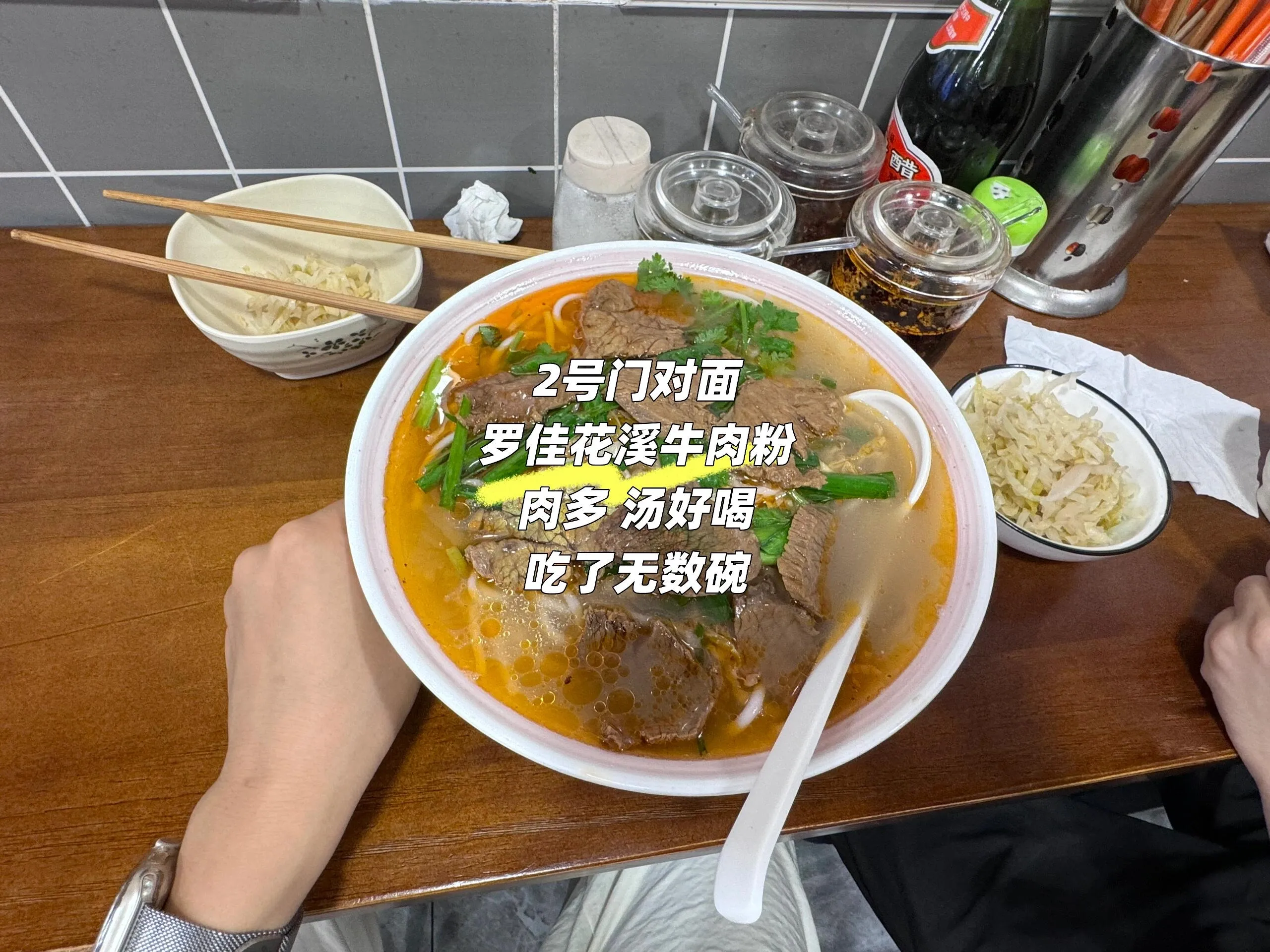 人均16元以上。牛肉多且新鲜,汤头浓郁。店里有免费豆浆和酸菜。推荐先喝原味粉,再加双椒酱,又辣又美味。