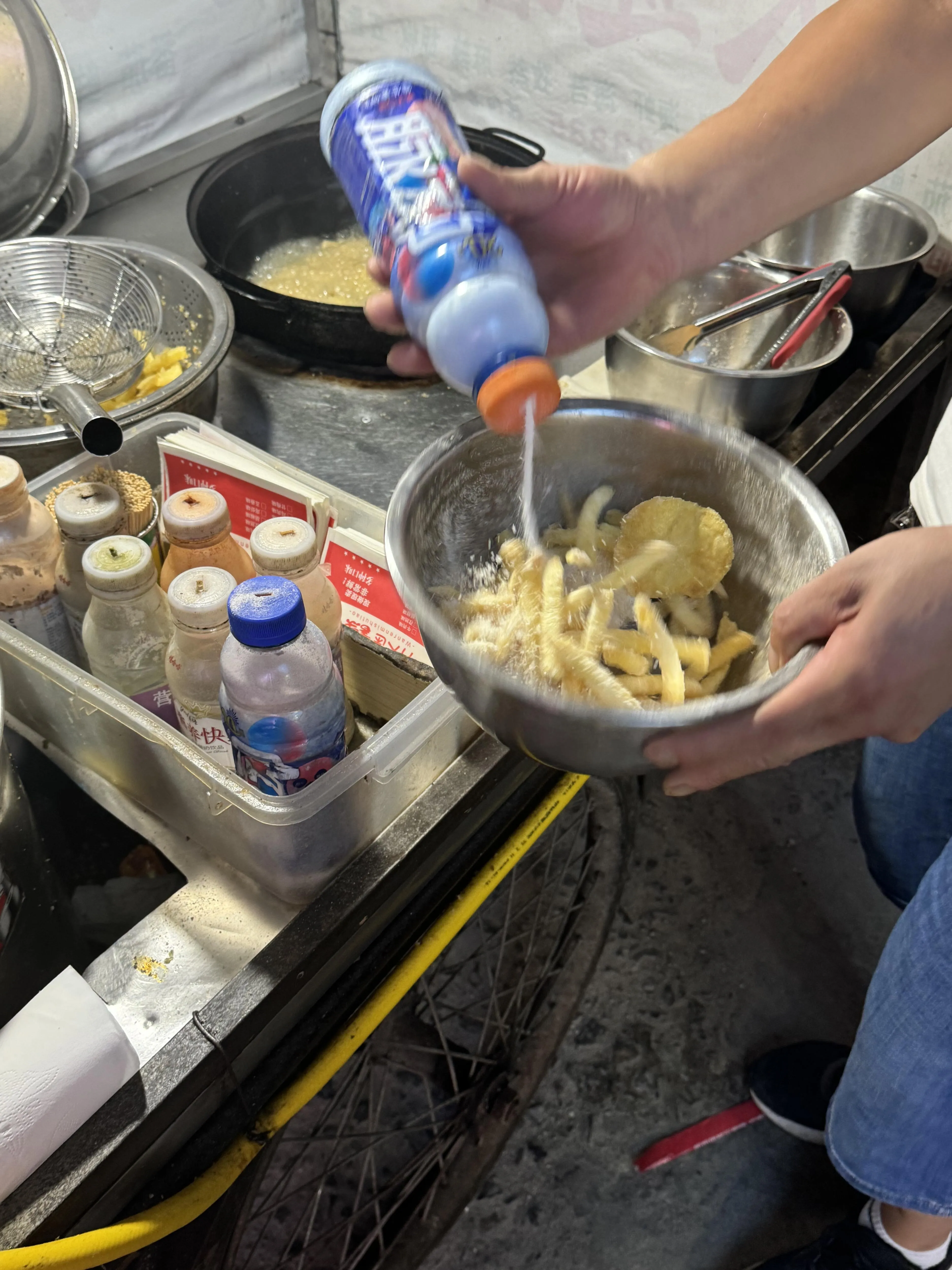 薯条采用按斤称重的销售方式,通常5元就能买到一份量足的薯条。在众多口味中, 番茄和鲜贝口味的组合尤其受欢迎 ,酸甜咸口的味道令人回味无穷。
