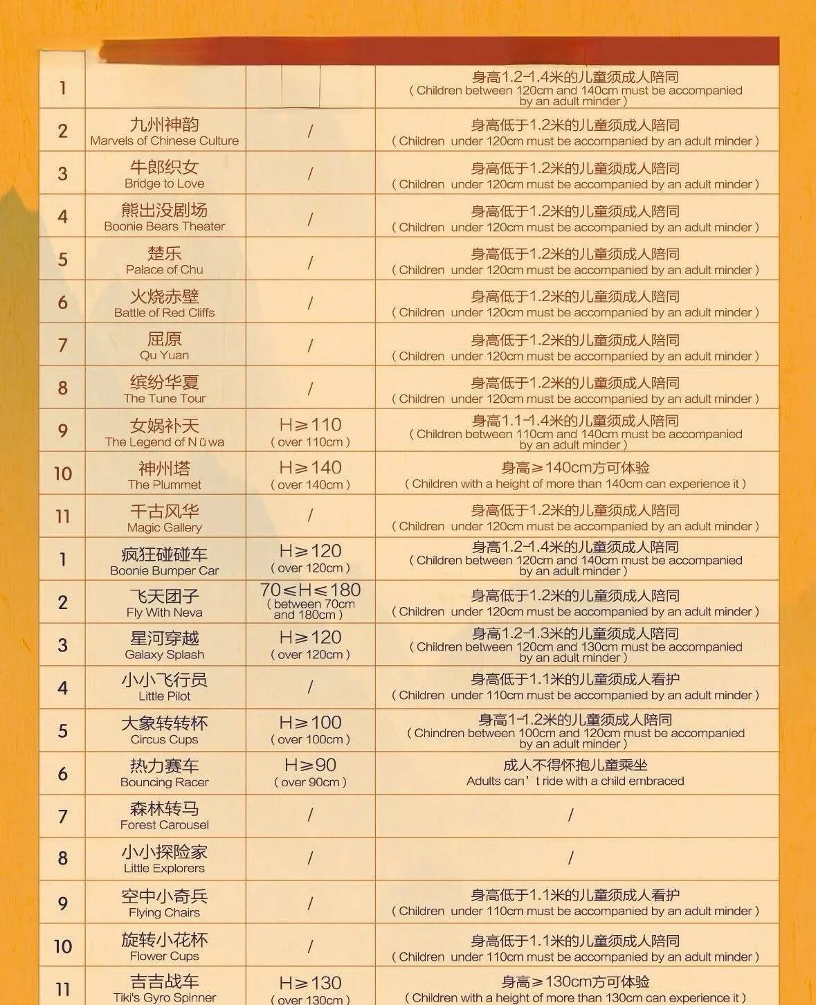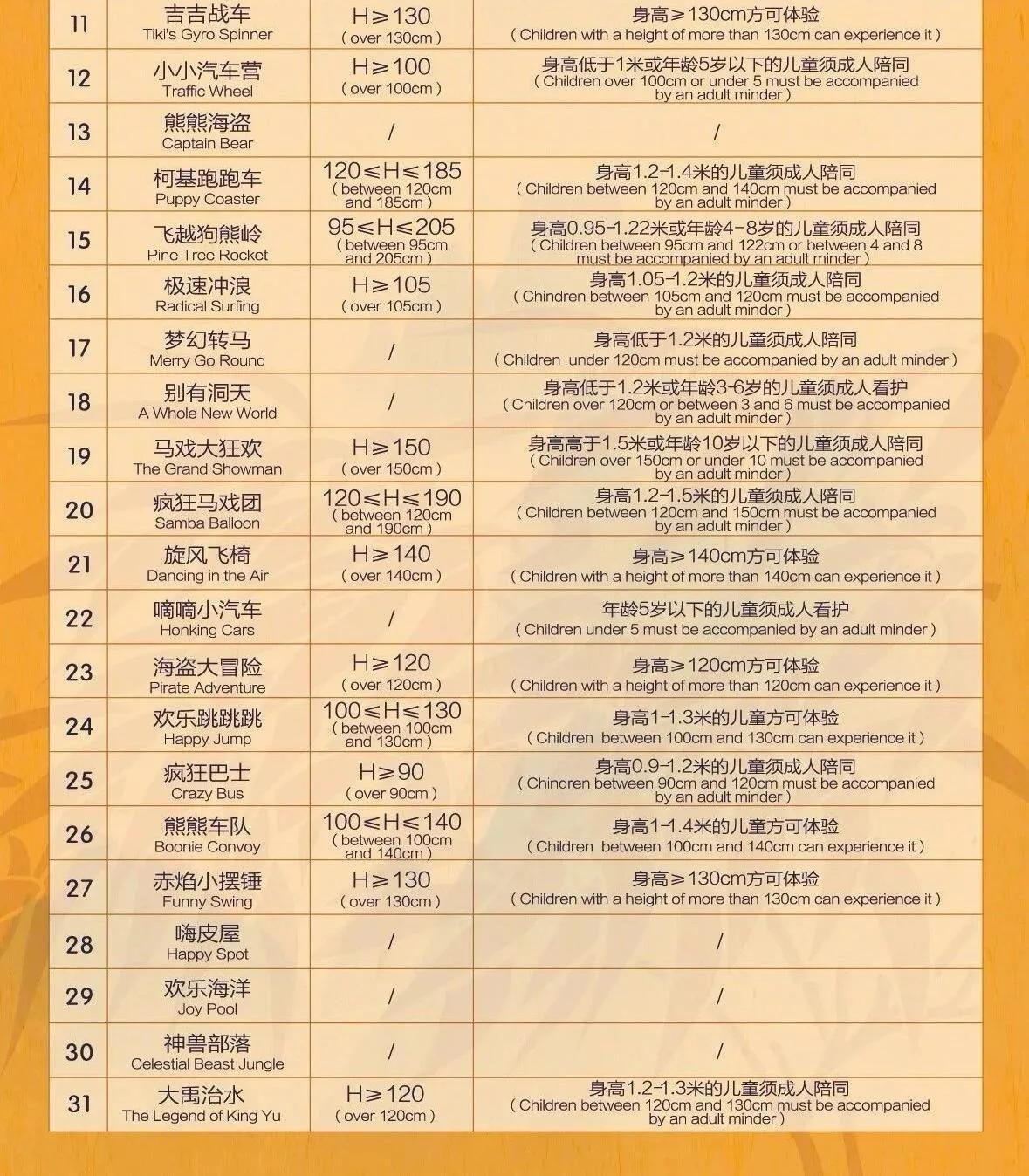 其他项目类似一般游乐园,可以根据孩子兴趣选择。具体项目详情和身高要求可以参考图片。