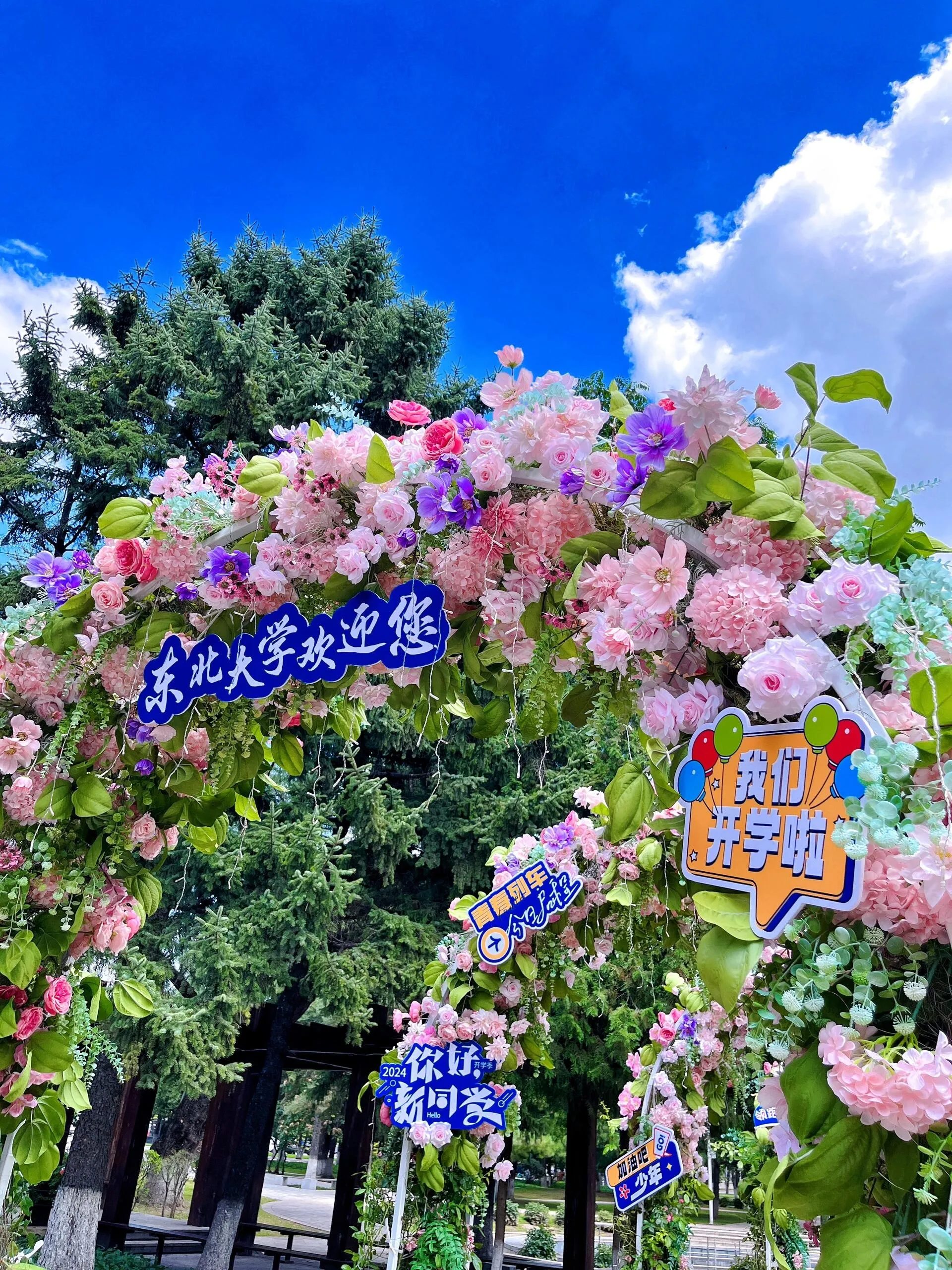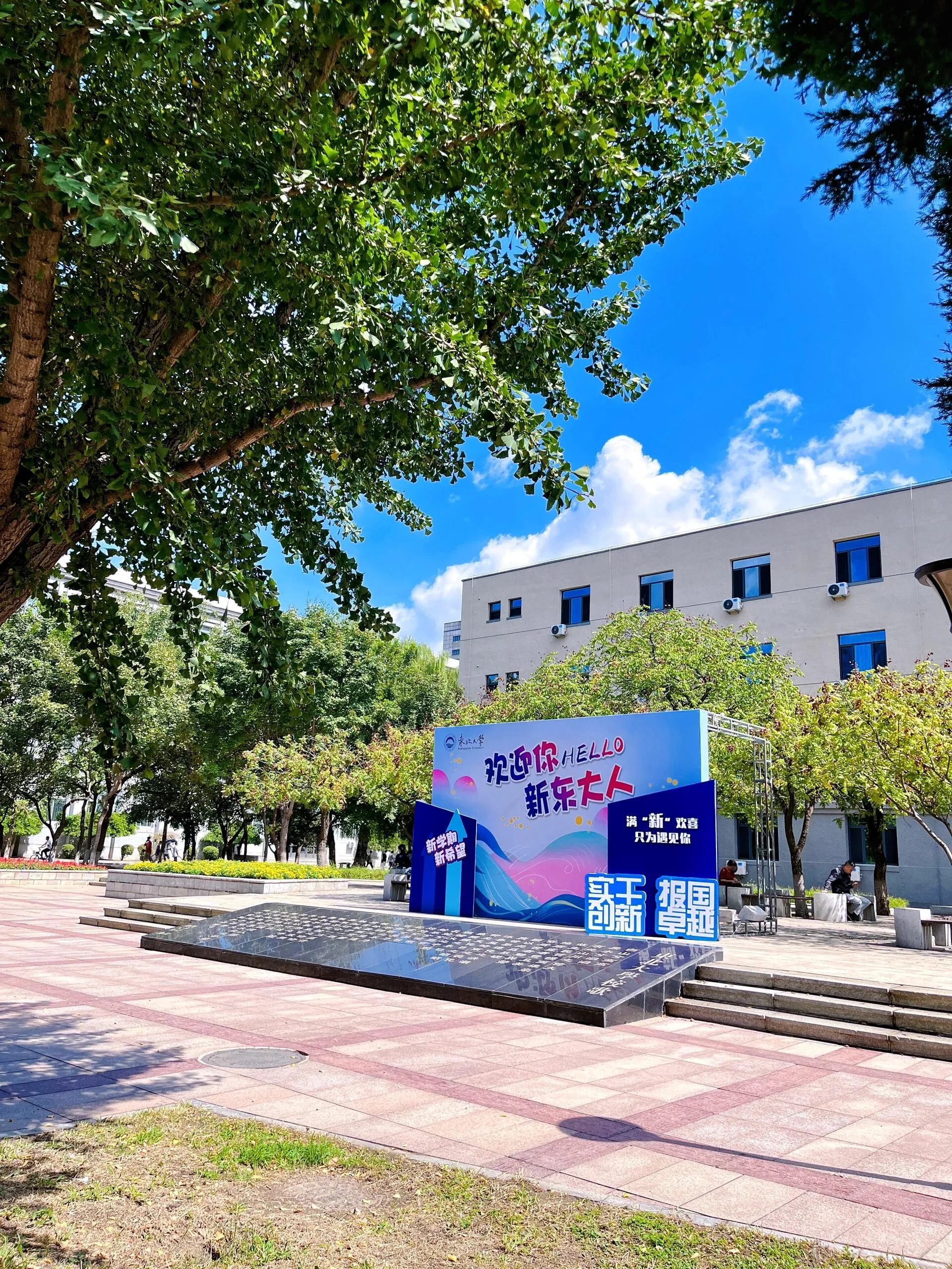 秋高气爽,天朗气清,东北大学校园在蓝天白云的映衬下宛如一幅壁画,美不胜收。正值开学季,学校设计了许多拍照打卡点,景色优美,非常适合拍摄。