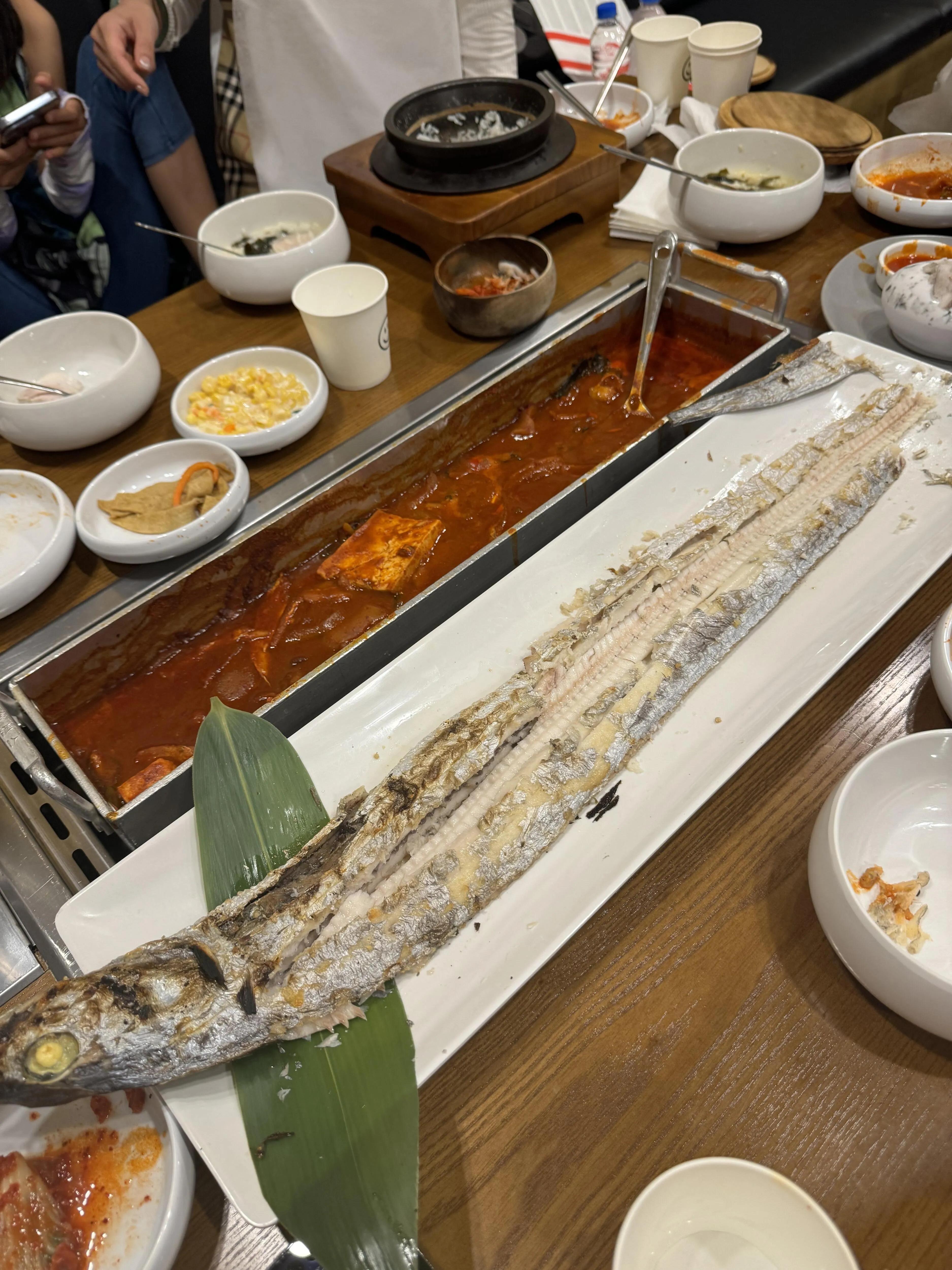 用餐方面,君悦酒店附近的餐厅选择很多。我们选了一家以带鱼为特色的餐厅,韩国的带鱼真的很美味,连孩子都很喜欢。