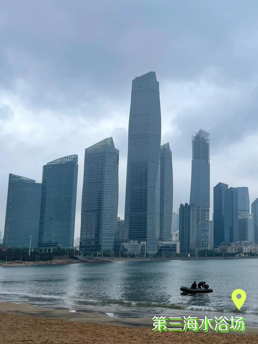石老人浴场面积广阔,是许多游客的最爱。这里不仅可以体验“胆小版”蹦极,沿路还有许多适合打卡拍照的特色餐厅。