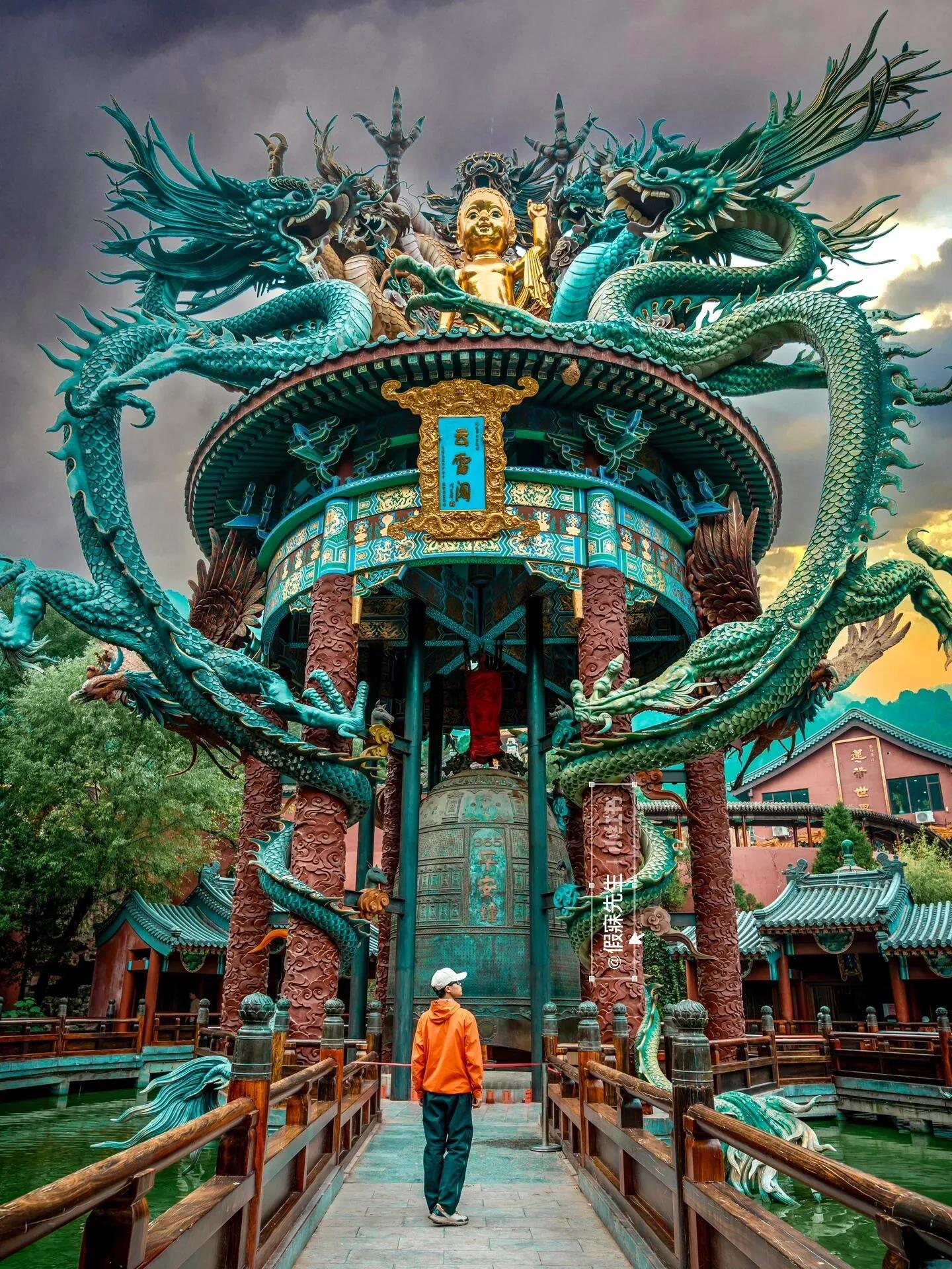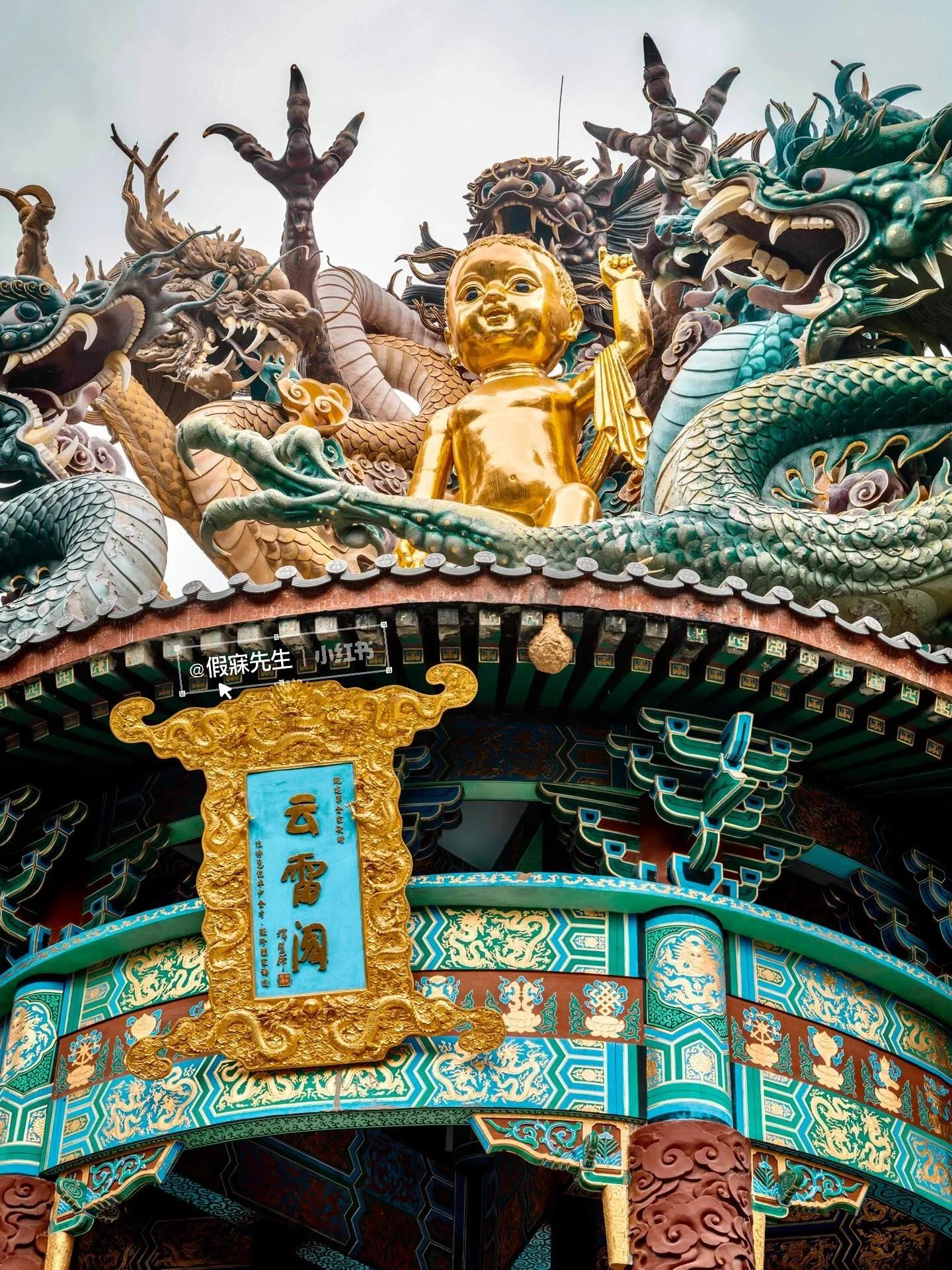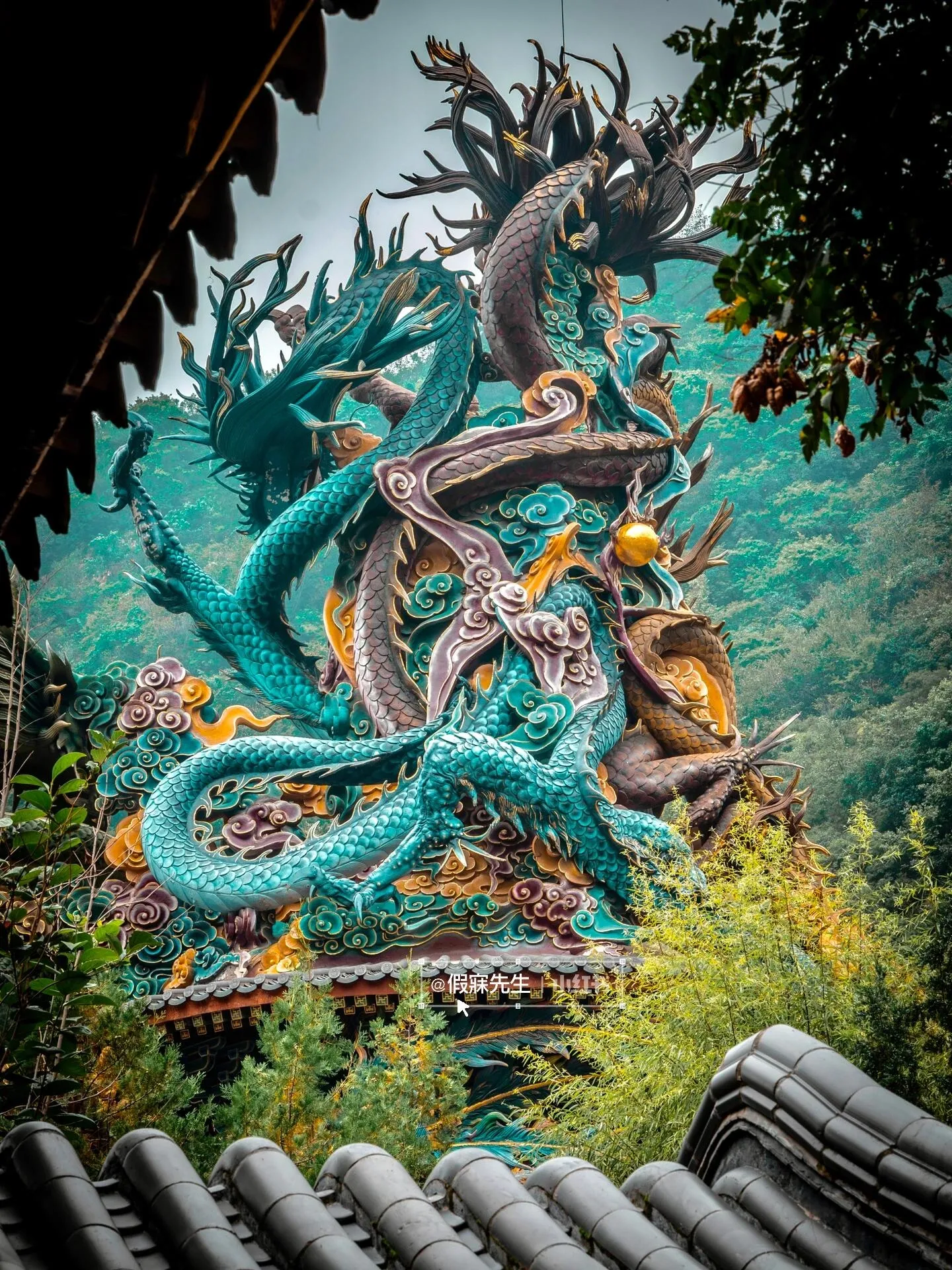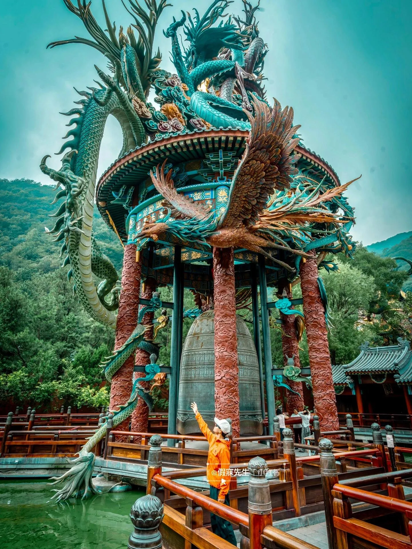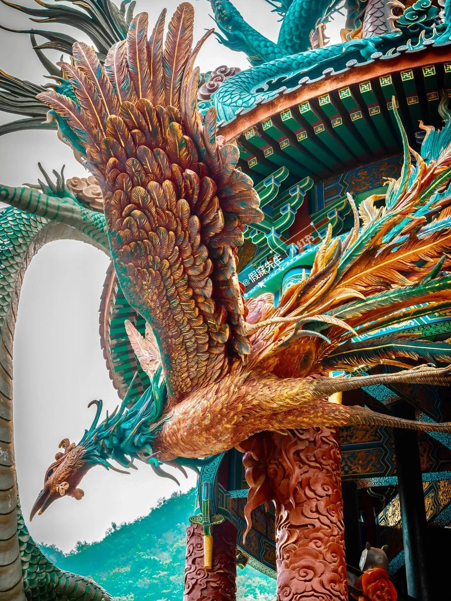 白瀑寺极具视觉冲击力,令人震撼,仿佛闯入了玄幻世界。金色孩童、振翅凤凰、腾飞蛟龙、碧绿池水,这些元素组合在一起,让人不禁联想到《黑神话·悟空》的游戏场景。