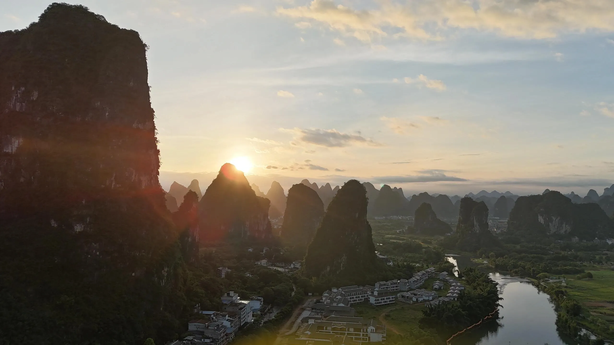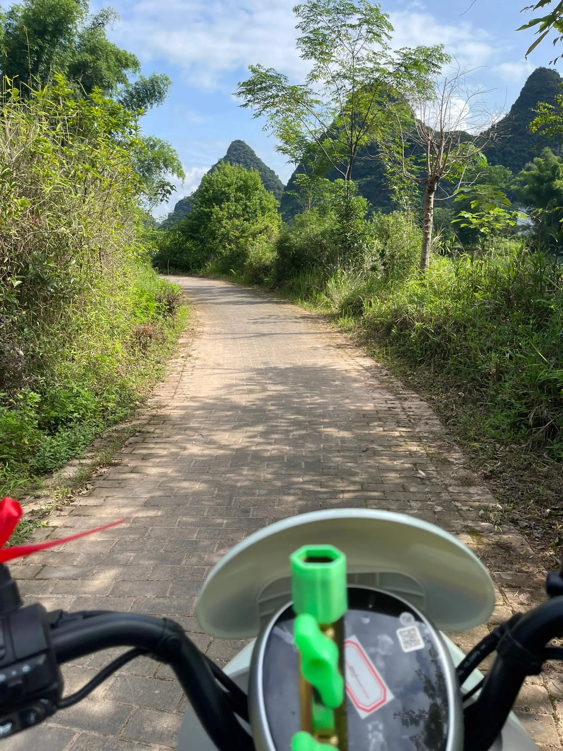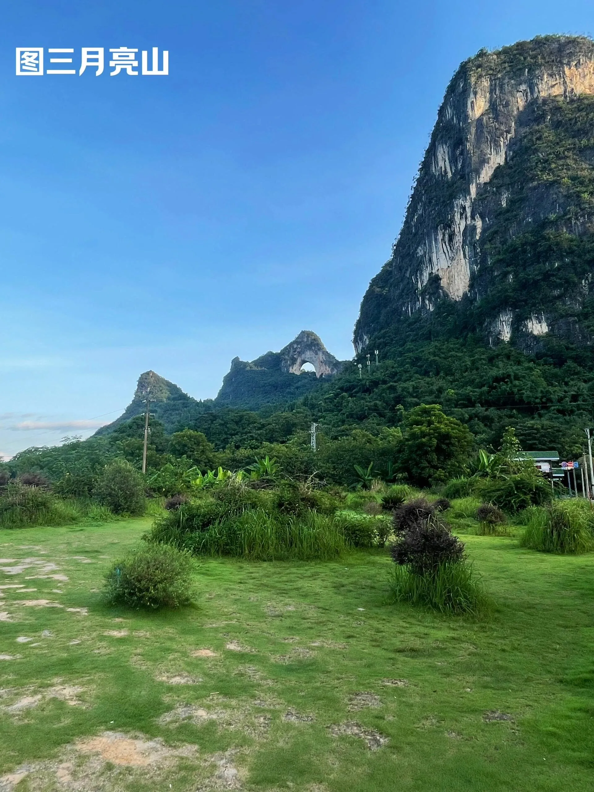 第一段:从阳朔县城出发,经过蝴蝶泉洞口、工农桥,到达历村。这一段景色相对普通,如果时间有限或天气炎热,可以考虑跳过。值得一提的是, 蝴蝶泉洞口是一个免费景点 ,可以远远拍照留念。在工农桥上拍照时,记得将车停在桥外。桥下的工农桥码头也是个不错的拍摄点。到达历村后,穿过村口门牌,右侧约10米处有一片草地,是拍摄月亮山的绝佳位置。