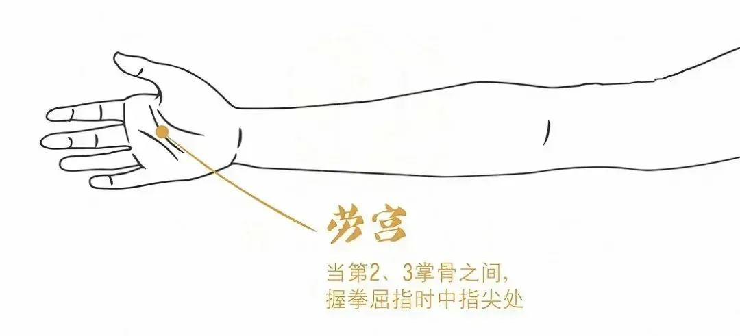 劳宫穴能够清心火、安定情绪,帮助缓解因情绪引起的血压升高。