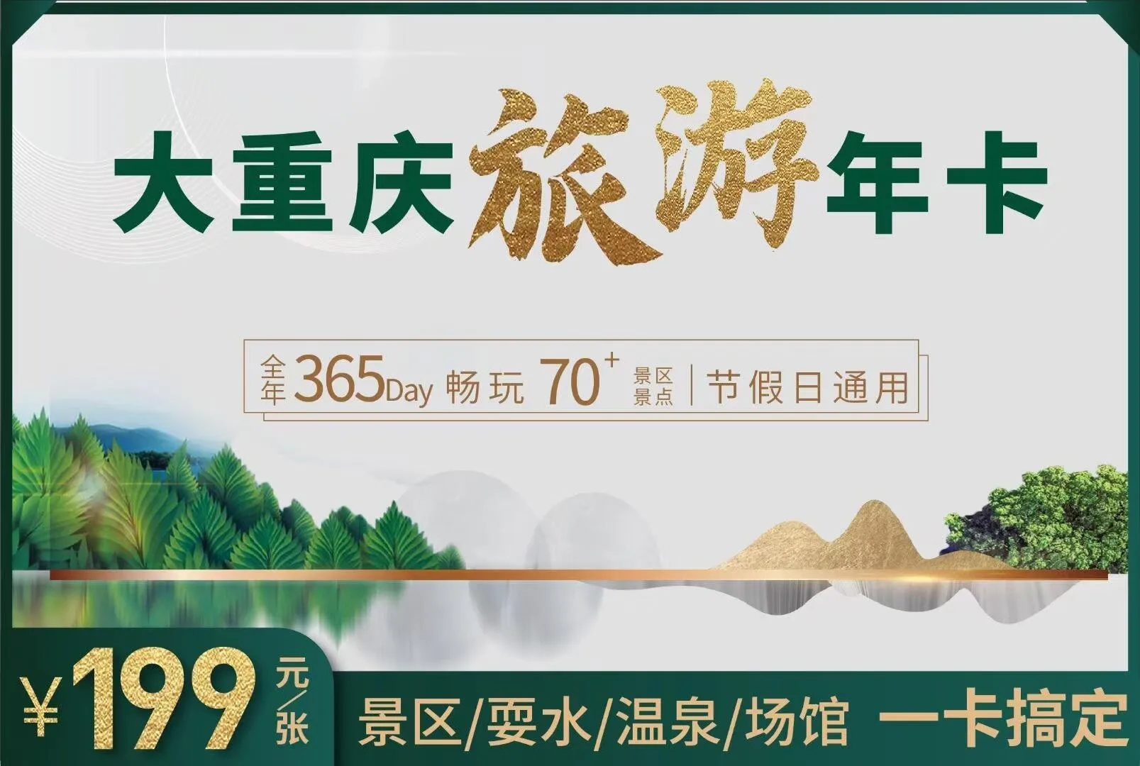 如果想要节省更多门票费用,可以了解一下重庆旅游年卡。只需199元,就可以在365天内免费游览70多个景区,可以即买即用,在景区检票口刷脸入园。