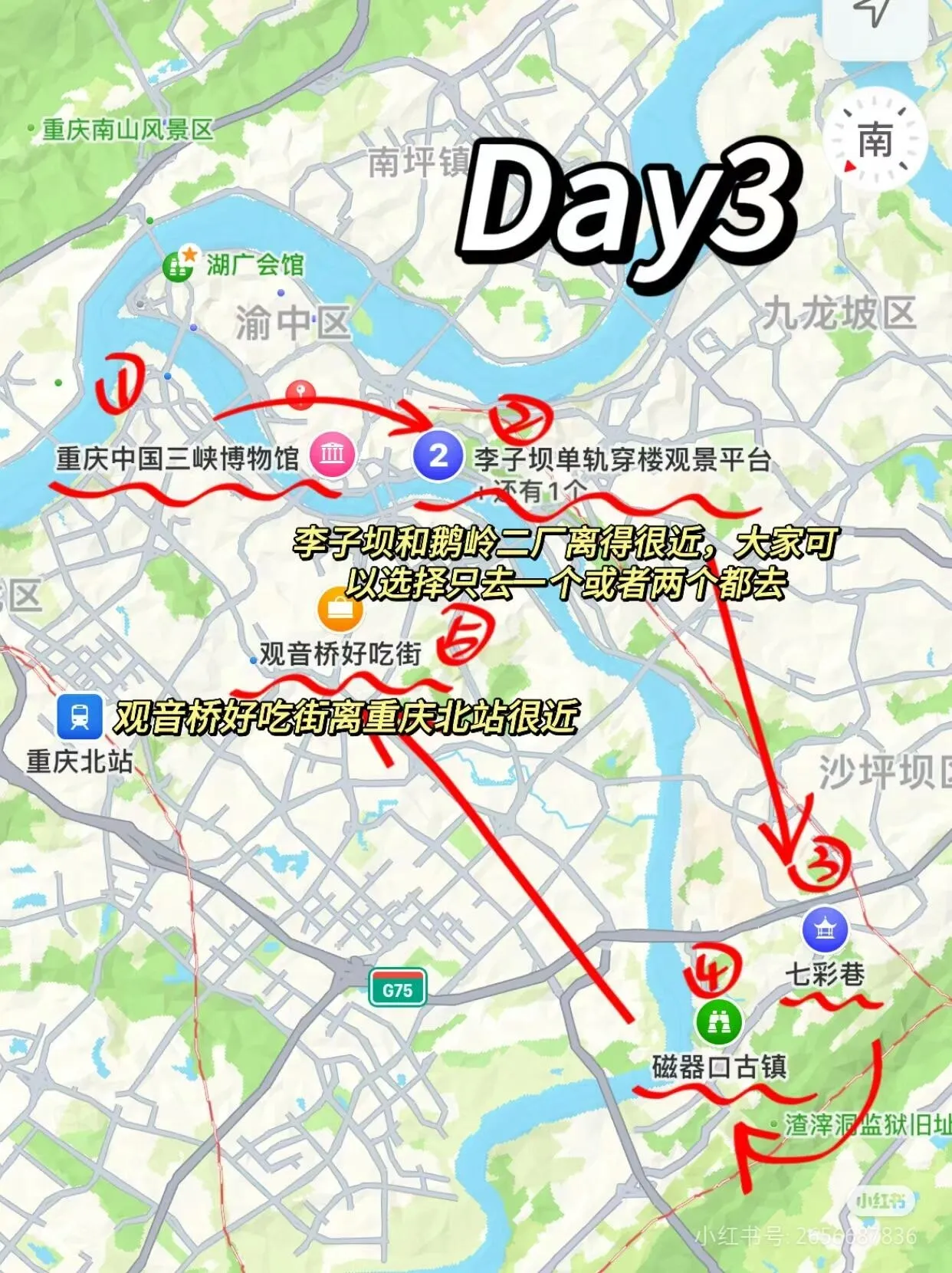 第一天的行程主要集中在重庆市中心: