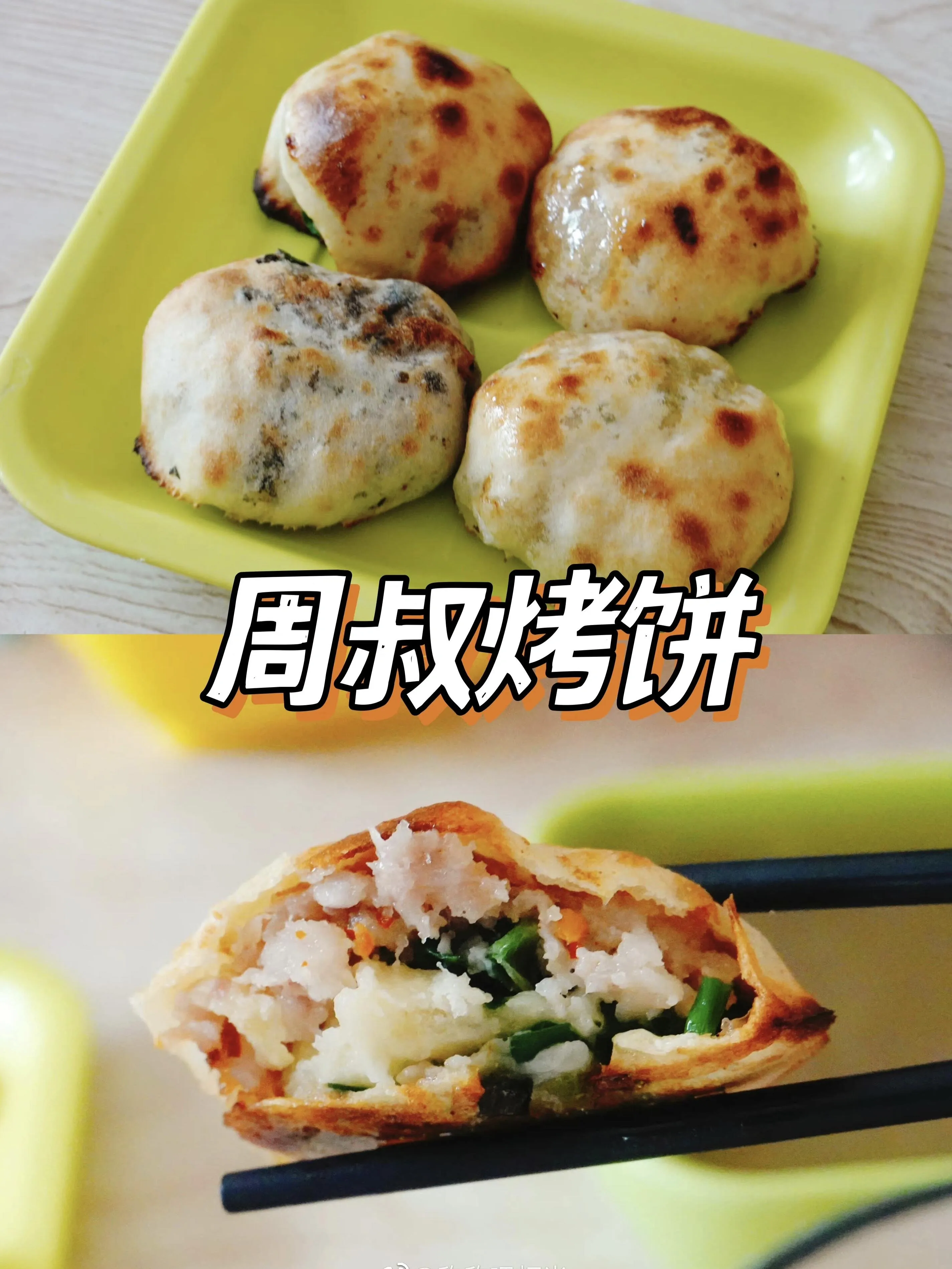 周叔烤饼:强烈推荐!里面满满的葱肉,夹杂着辣椒,吃起来酥脆又有汁水,让人欲罢不能。