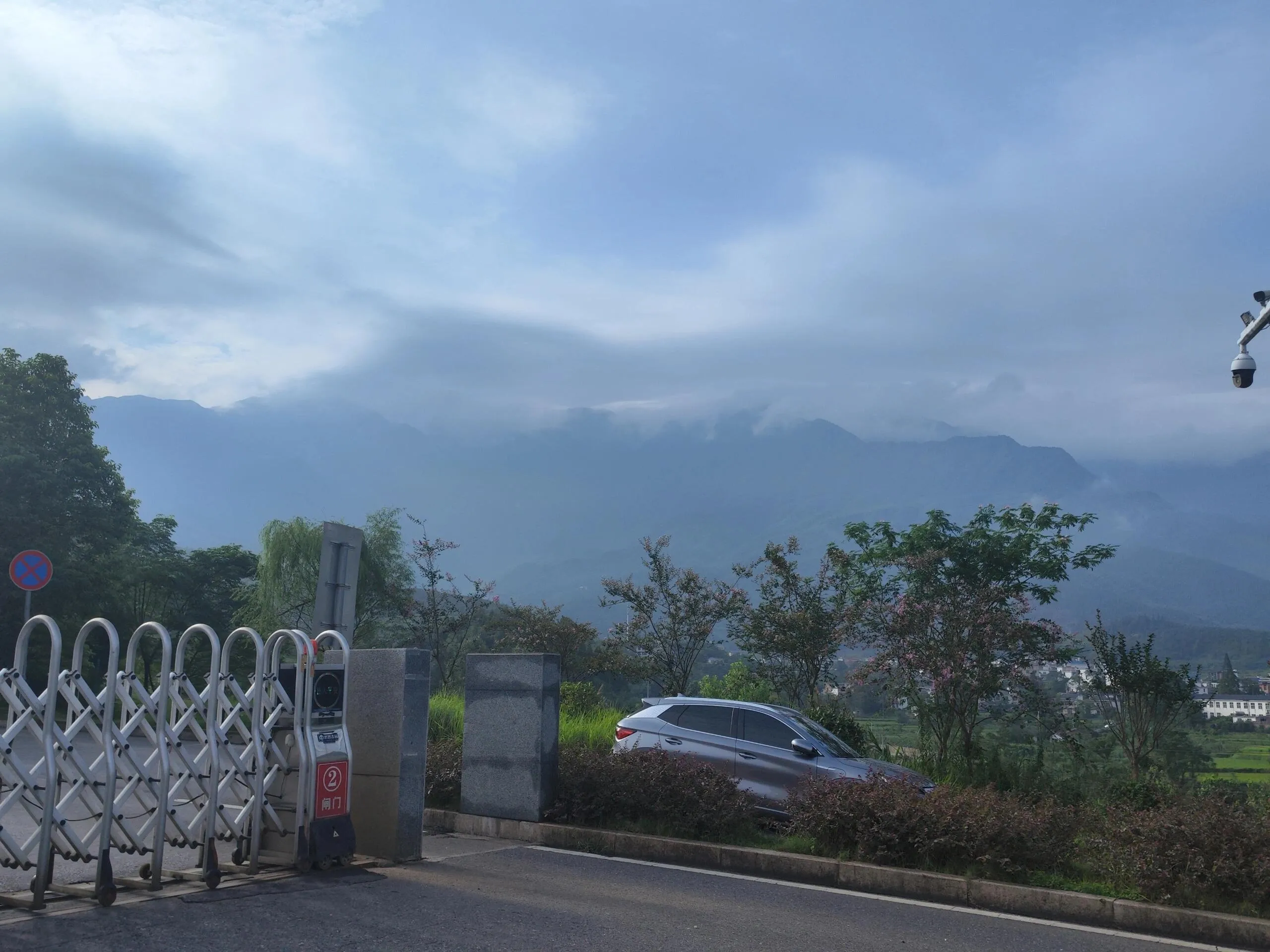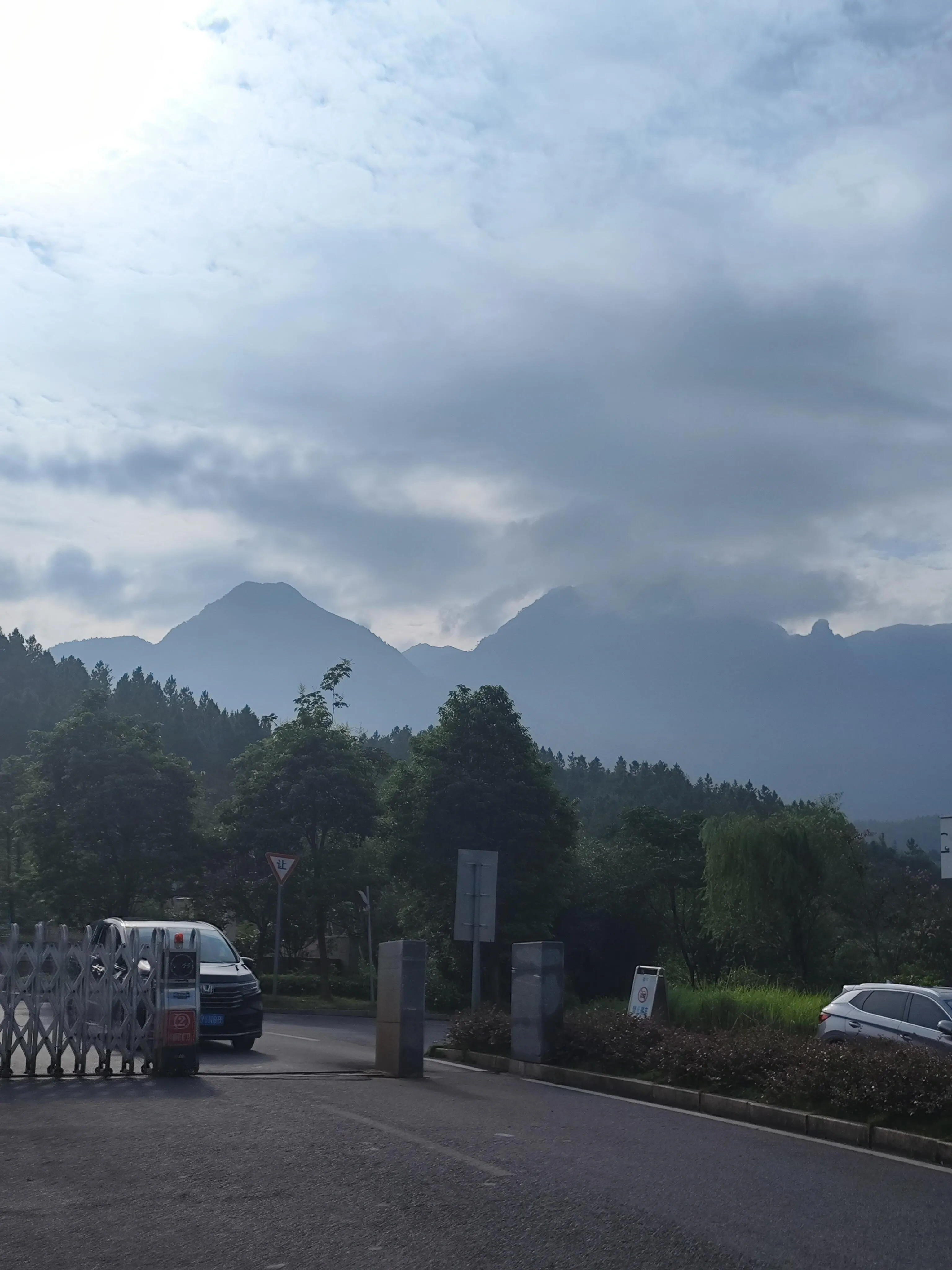 天气预报显示多云有雷阵雨,但目前山上一片晴朗。