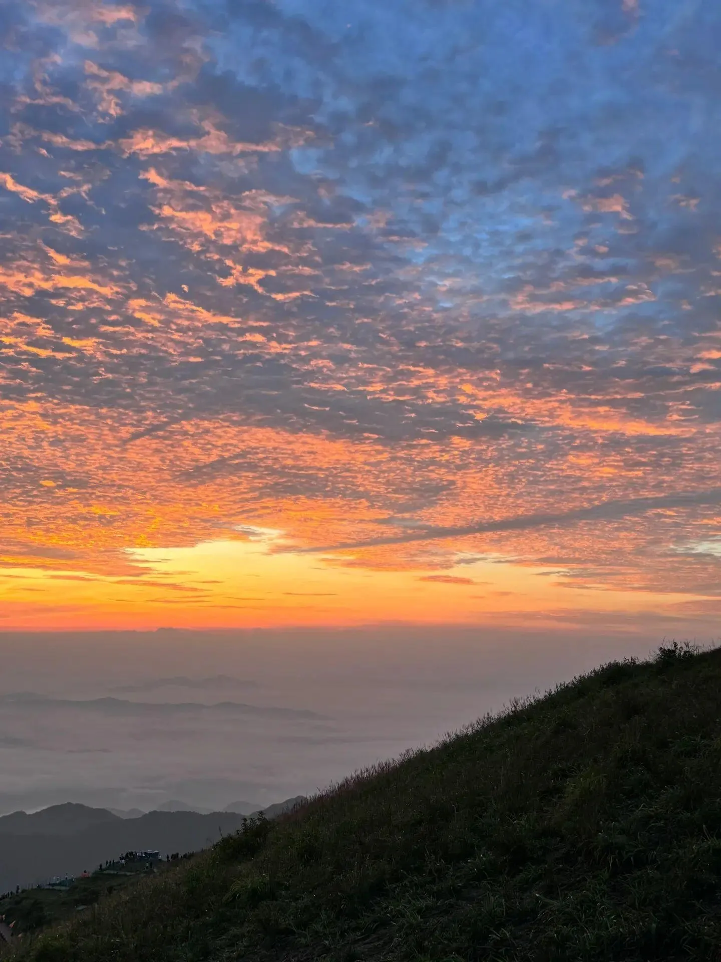 下午3点和5点有60%概率出现雷阵雨,其余时间基本晴天,不影响爬山。记住,雨停之后是武功山最美的时候!