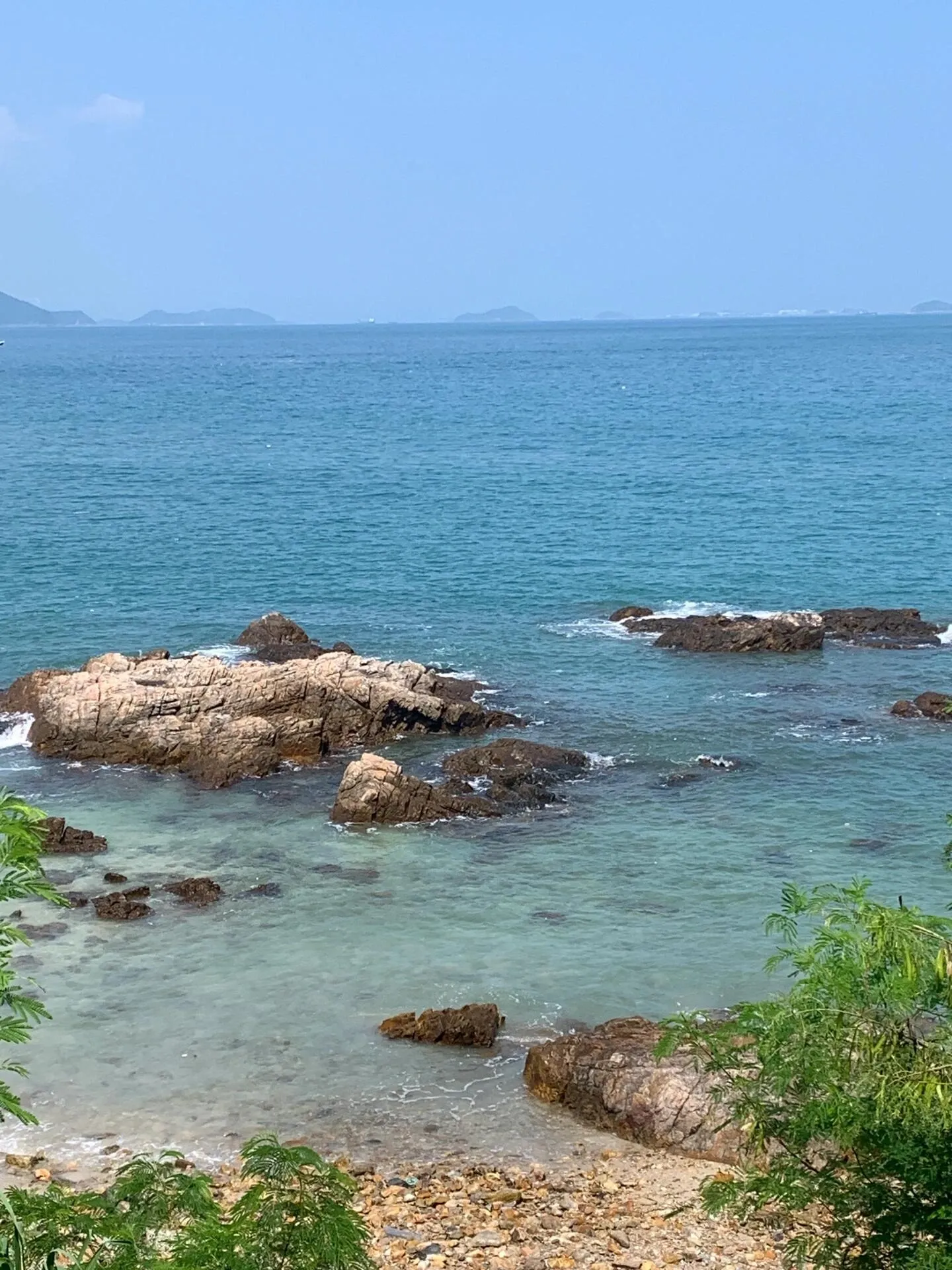 接着我们来到了 杨梅坑。 这里的海水比桔钓沙干净得多,纯净得让人惊叹。唯一的缺点是没有沙滩,水底都是小石头,光脚走起来有点像在指压板上。