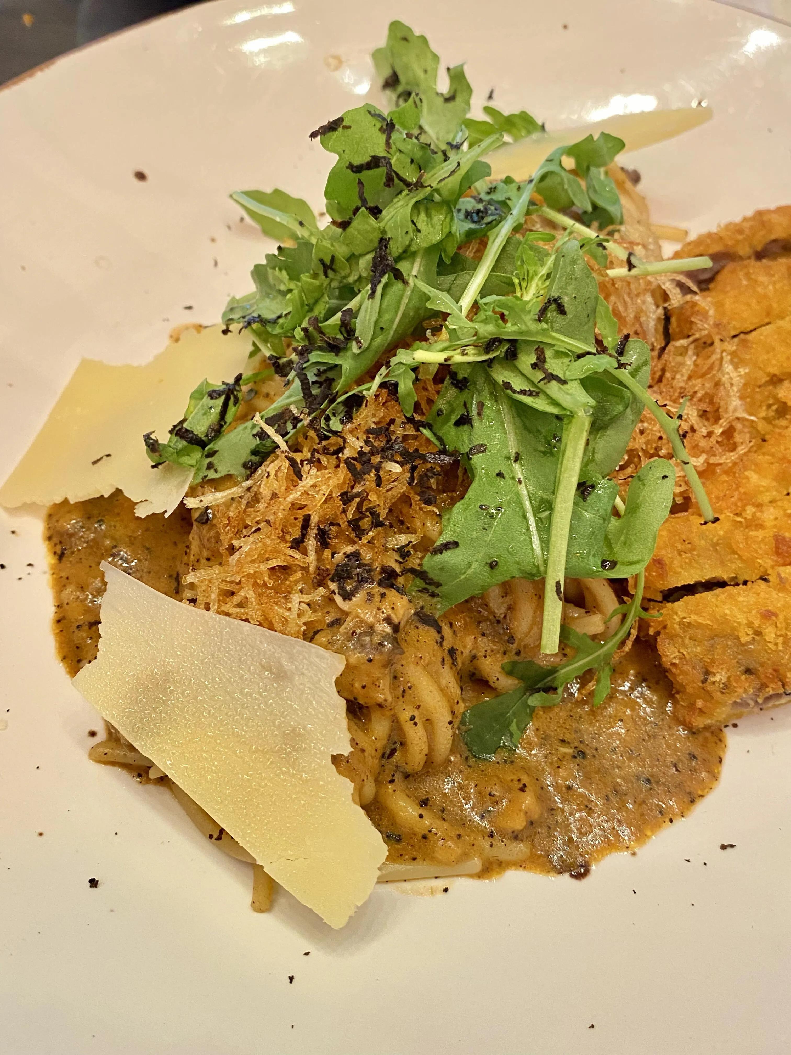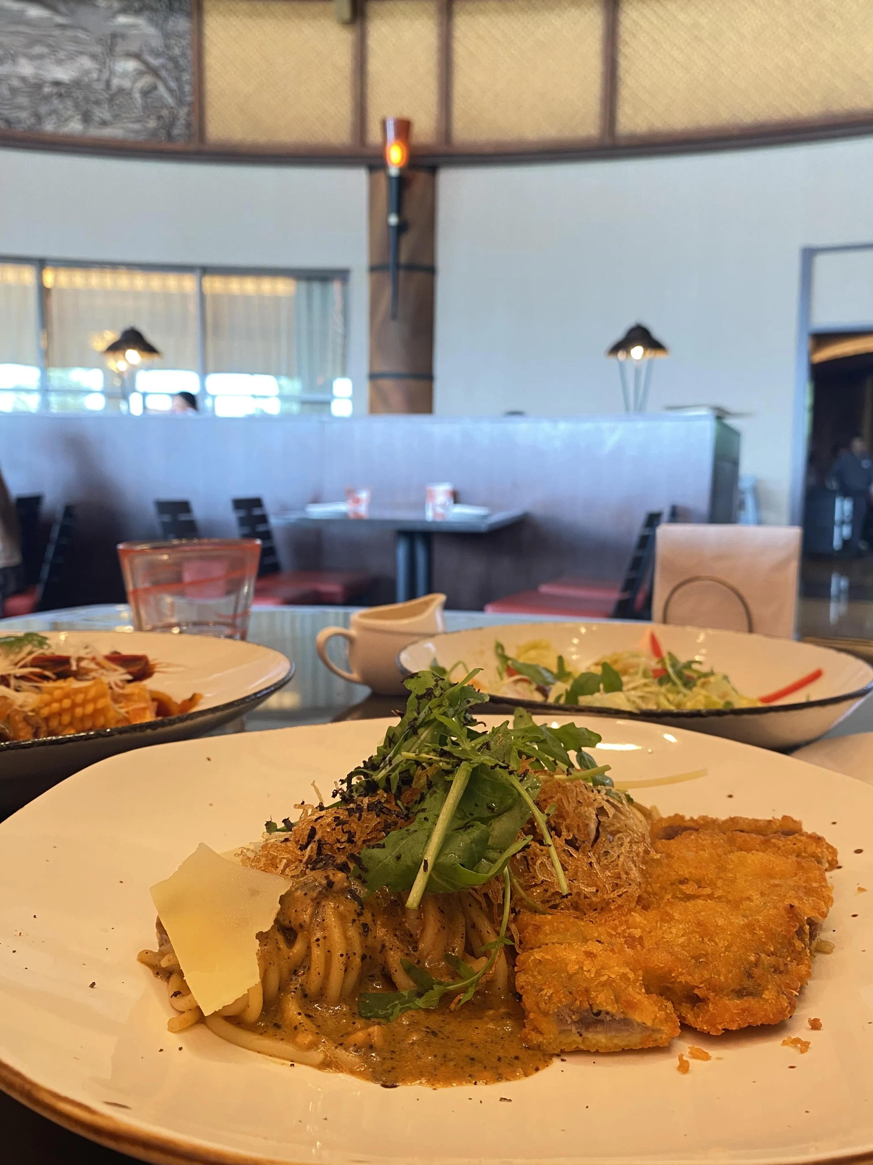 午饭:在侏罗纪园区的哈蒙德餐厅,窗边位置需要等很久,普通位置大约排半小时即可,人均200元。黑松露奶油牛肉意面,味道挺棒。