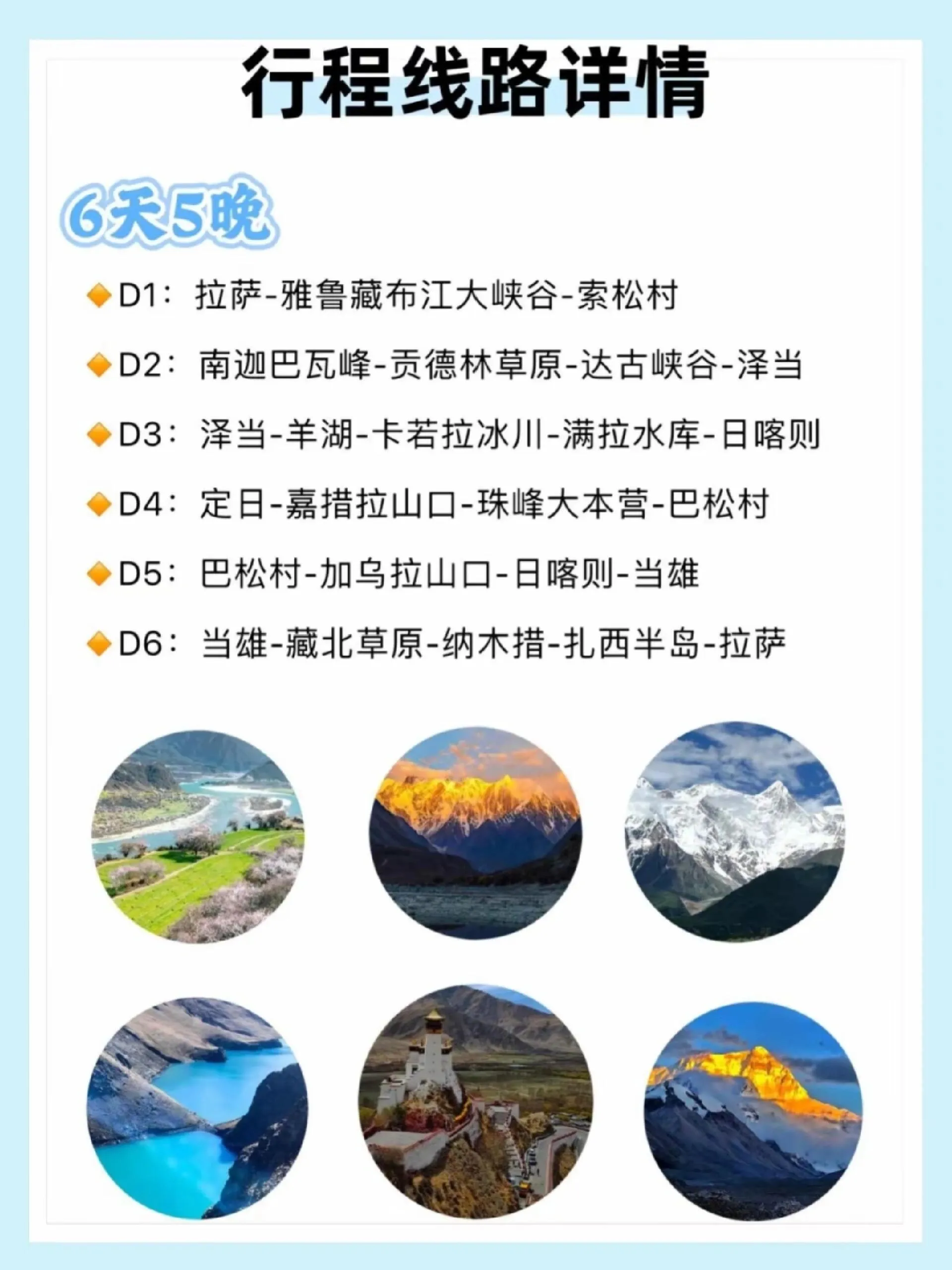 对于首次到访西藏的游客, 建议在拉萨市内可以自由行 ,而到市外游玩时最好跟团。有些旅行团提供六日全景环线行程,可以游览珠穆朗玛峰、林芝、羊湖、纳木措等热门景点,既安全又舒适。