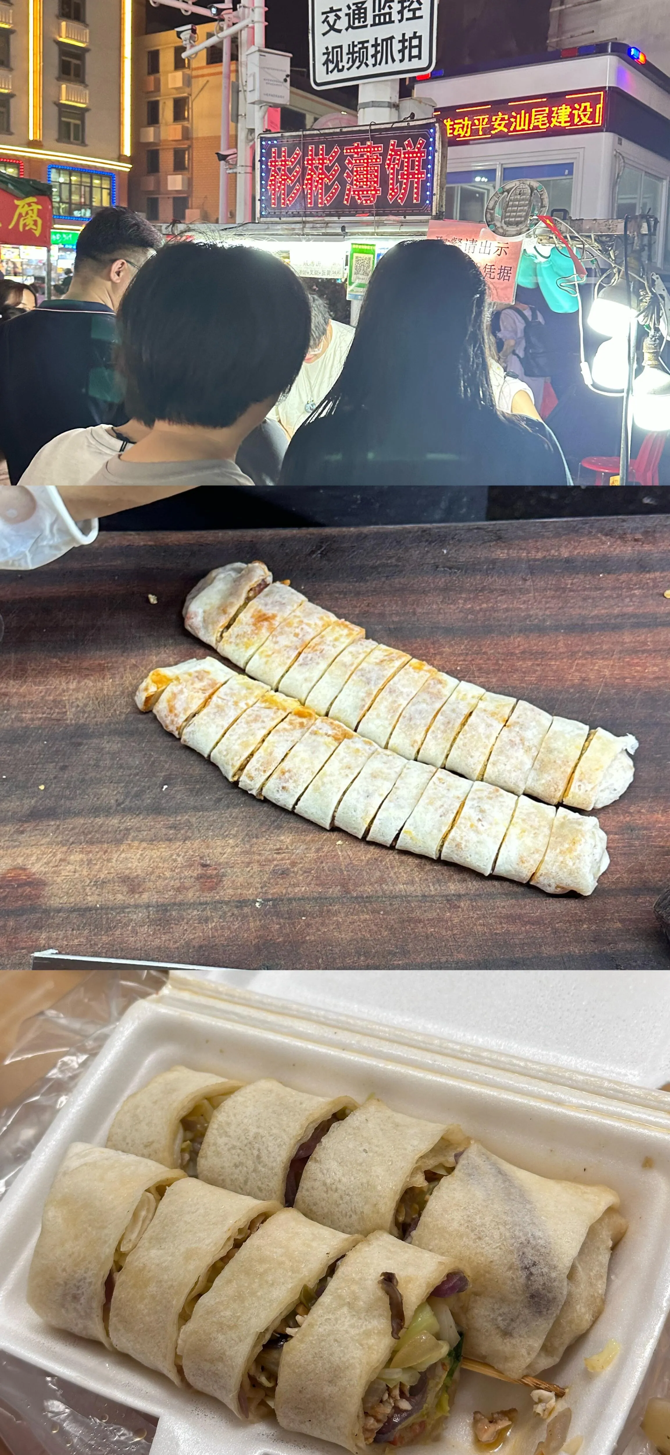 彬彬薄饼:咸薄饼里面有包菜、花生、洋葱等,搭配很可口。16块钱一盒,分量十足。