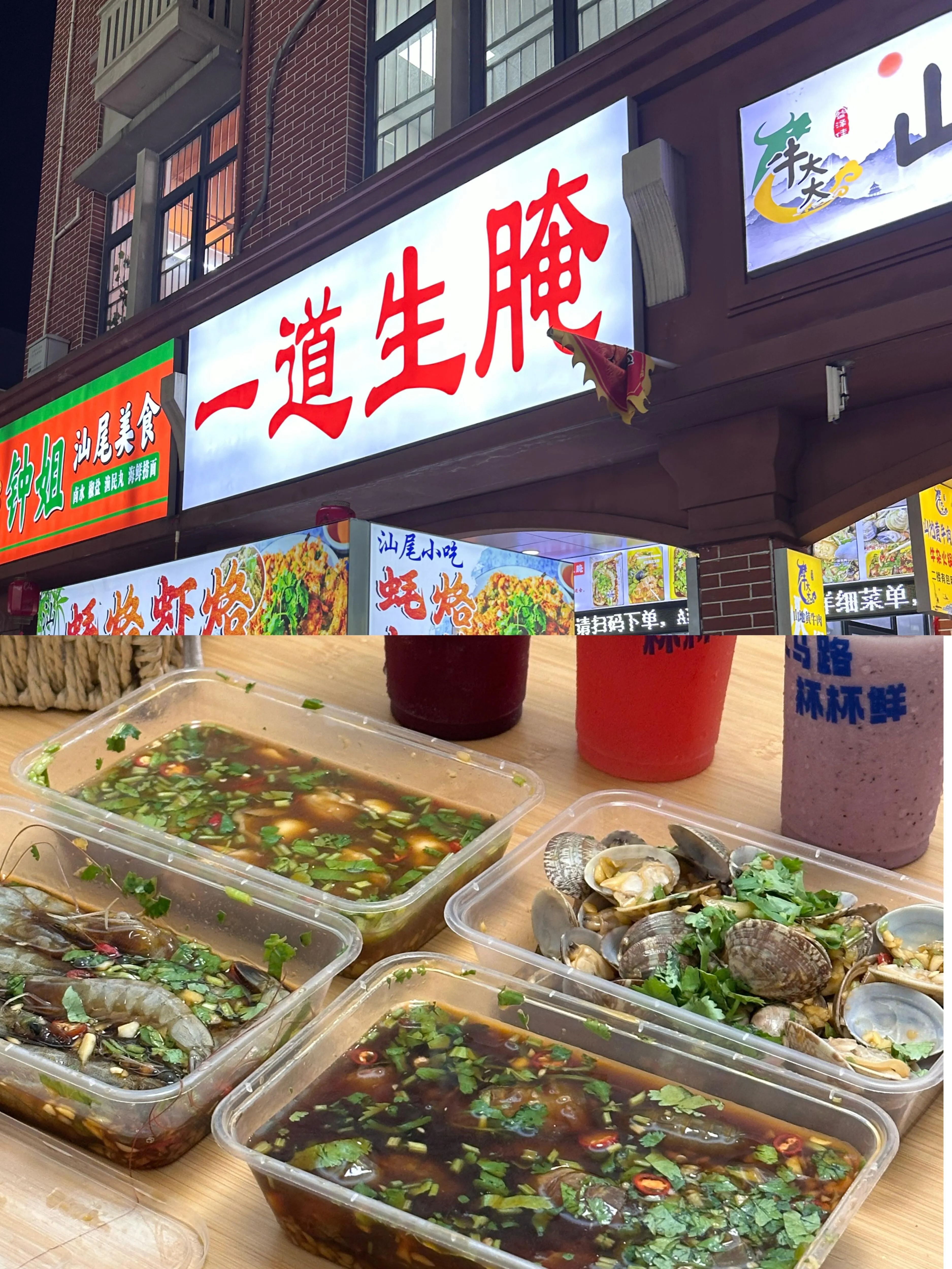 一道生腌:在二马路上,我们买了一份生蚝、白虾、花甲和皮皮虾,共110元。不过味道一般,可能是为了避免肠胃不适没选择路边摊的缘故。