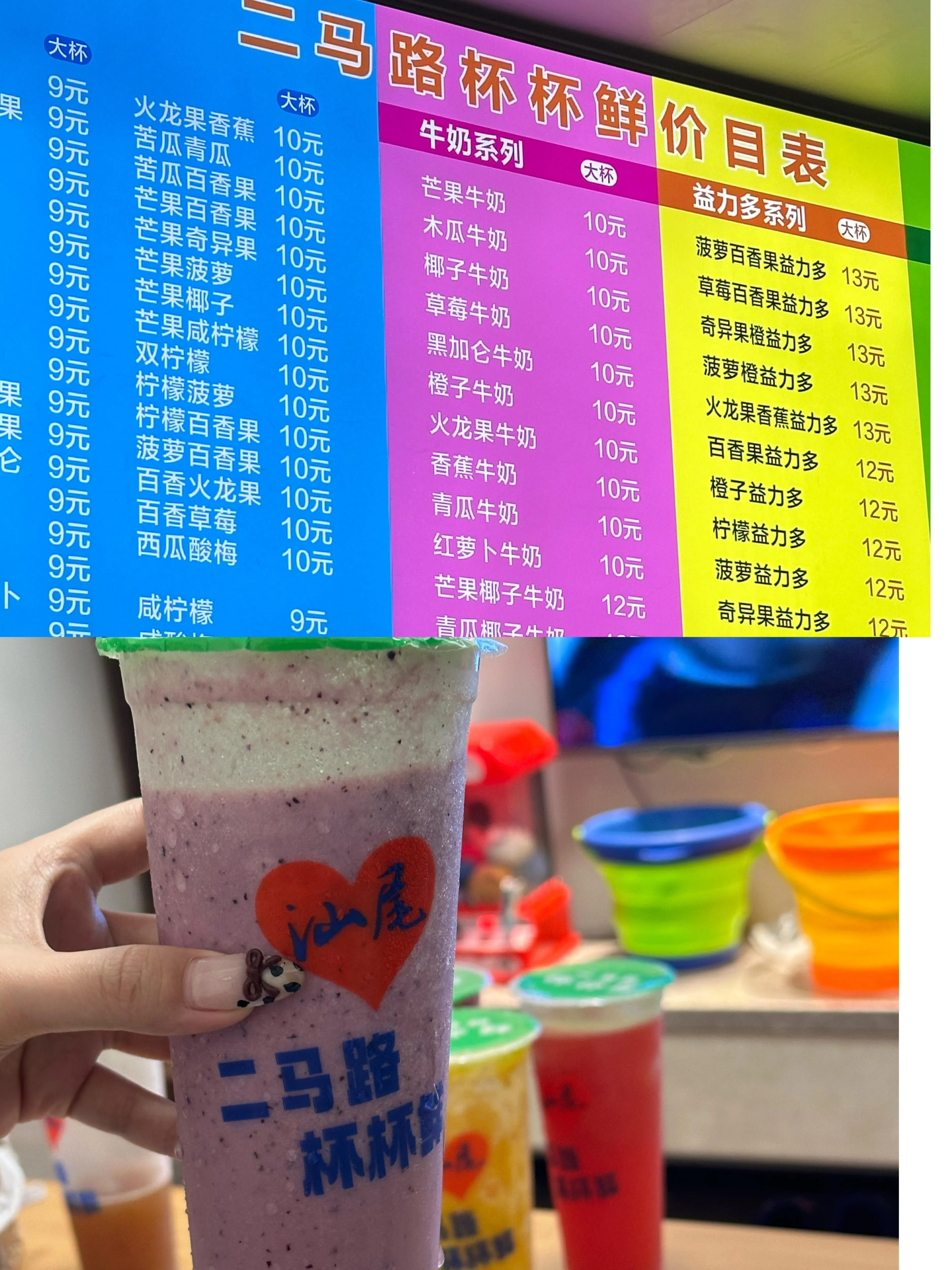 二马路杯杯鲜:尝试了5种口味,但感觉没有想象中那么好喝。少糖的也很甜,而且需要等待半小时以上,建议避开。