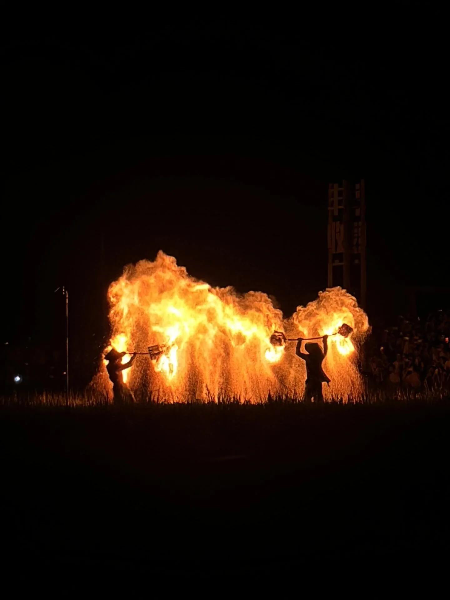 表演于晚上8点开始,持续约25分钟,分为四个部分:击鼓、火焰表演、打铁花和烟花秀。其中,打铁花环节尤为震撼,璀璨星点散落漫天,强烈的视觉冲击让人目不转睛。烟花秀则包括转轮式、喷射式以及传统的空中绽放型烟花,样式丰富多彩,营造出浓厚的节日氛围。