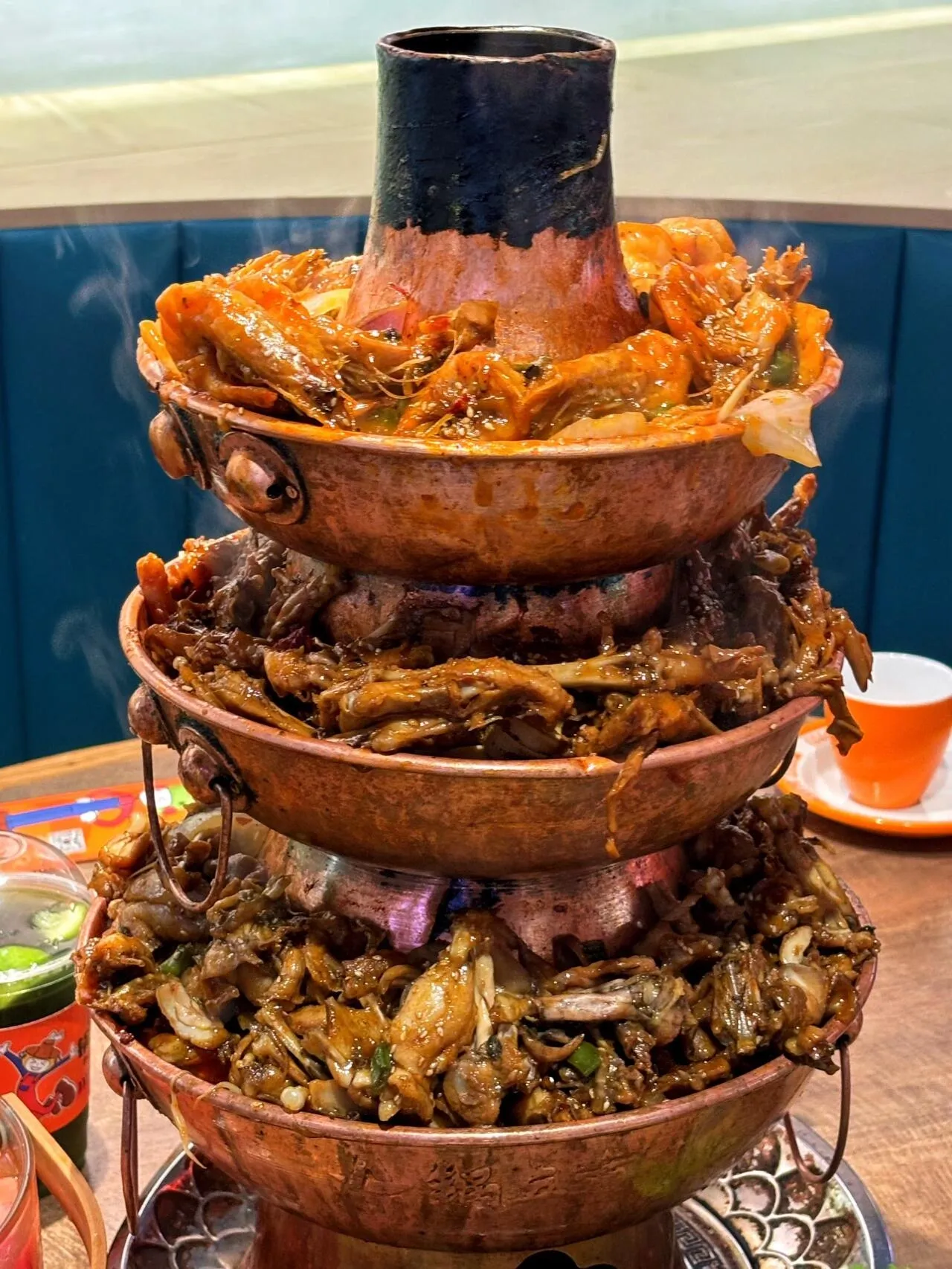 这家店的炭火牛蛙是不少人的首选。牛蛙肉质细腻可口,入味十足,让人越吃越上瘾。推荐尝试他们的三层炭火牛蛙锅,从底到顶依次是去好虾线的大虾、软烂脱骨的鸭掌和美味的蛙肉,满足感十足。此外,店里的各种甜品小吃也值得一试。