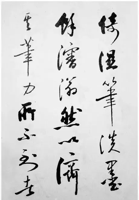 最后一首诗,林老蘸一次墨,写出了三个墨色不同的字。