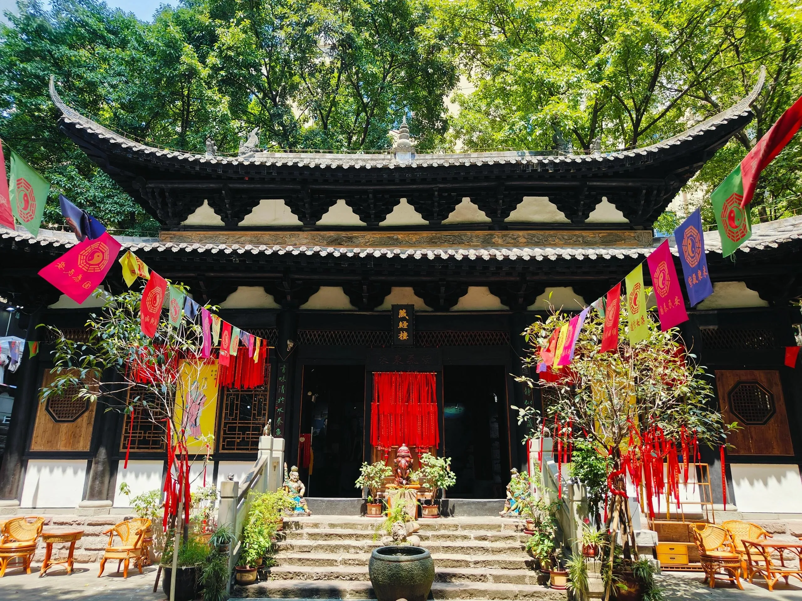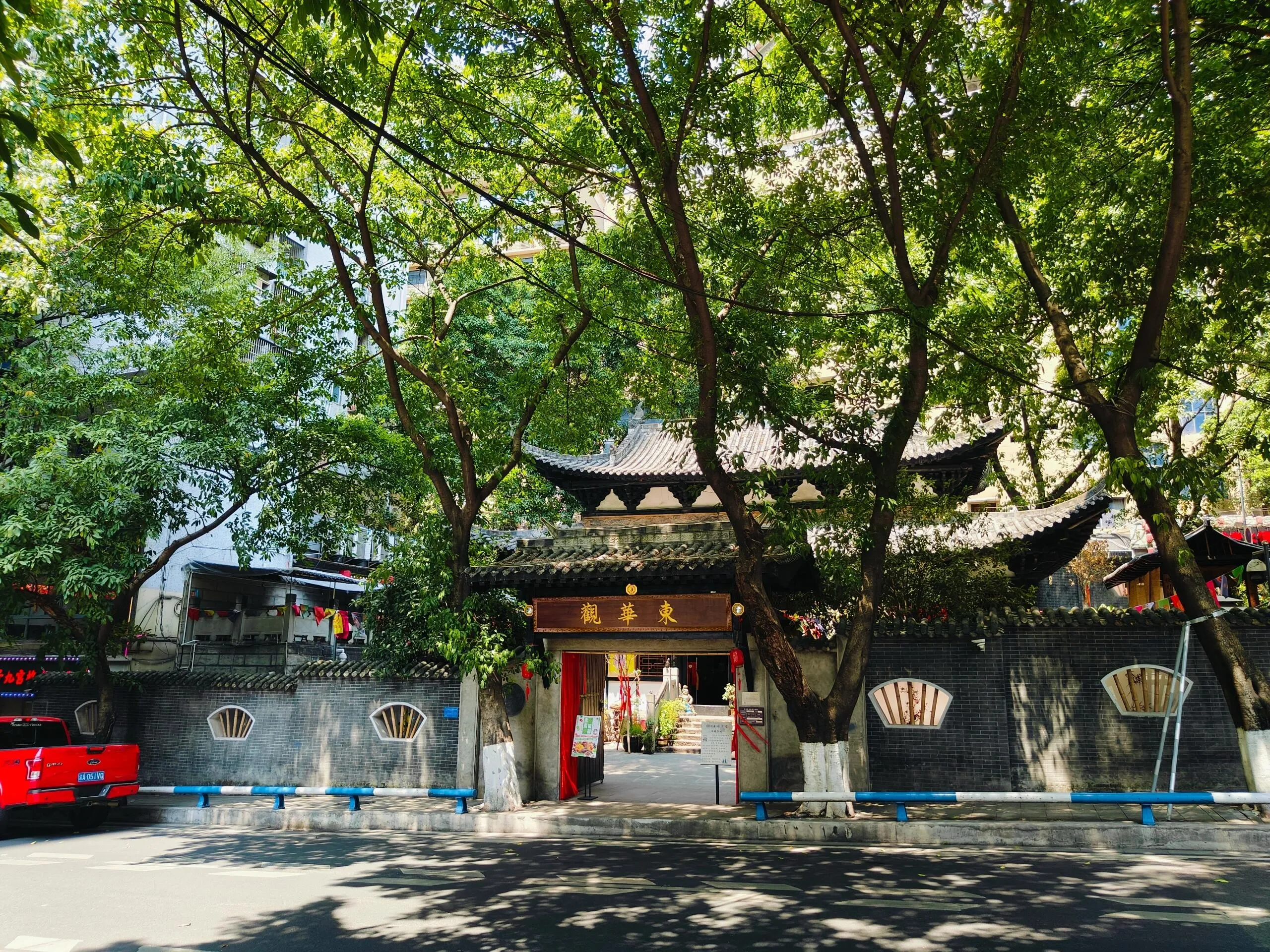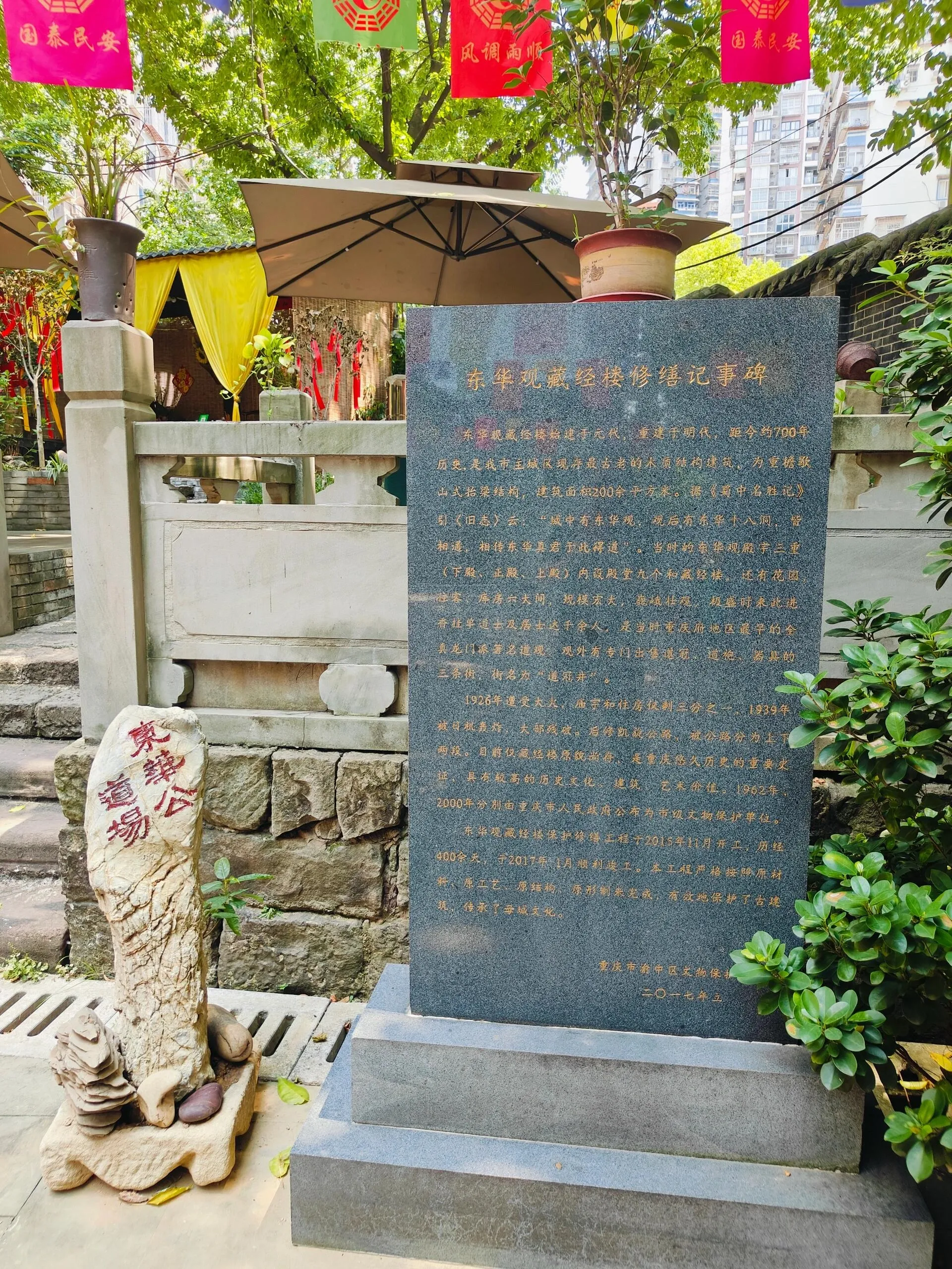 如今,东华观藏经楼被现代化的高楼大厦所包围。上有解放碑商圈,下有白象街商业体,旁边是新的十八梯商业体。尽管位置便利,但这里却显得格外宁静,鲜有人经过。以前人们常坐凯旋路电梯往来于上下半城,如今报业搬迁后,这里更显冷清。不过,观内设有茶社,为喜欢品茶的人提供了一个悠闲的去处。