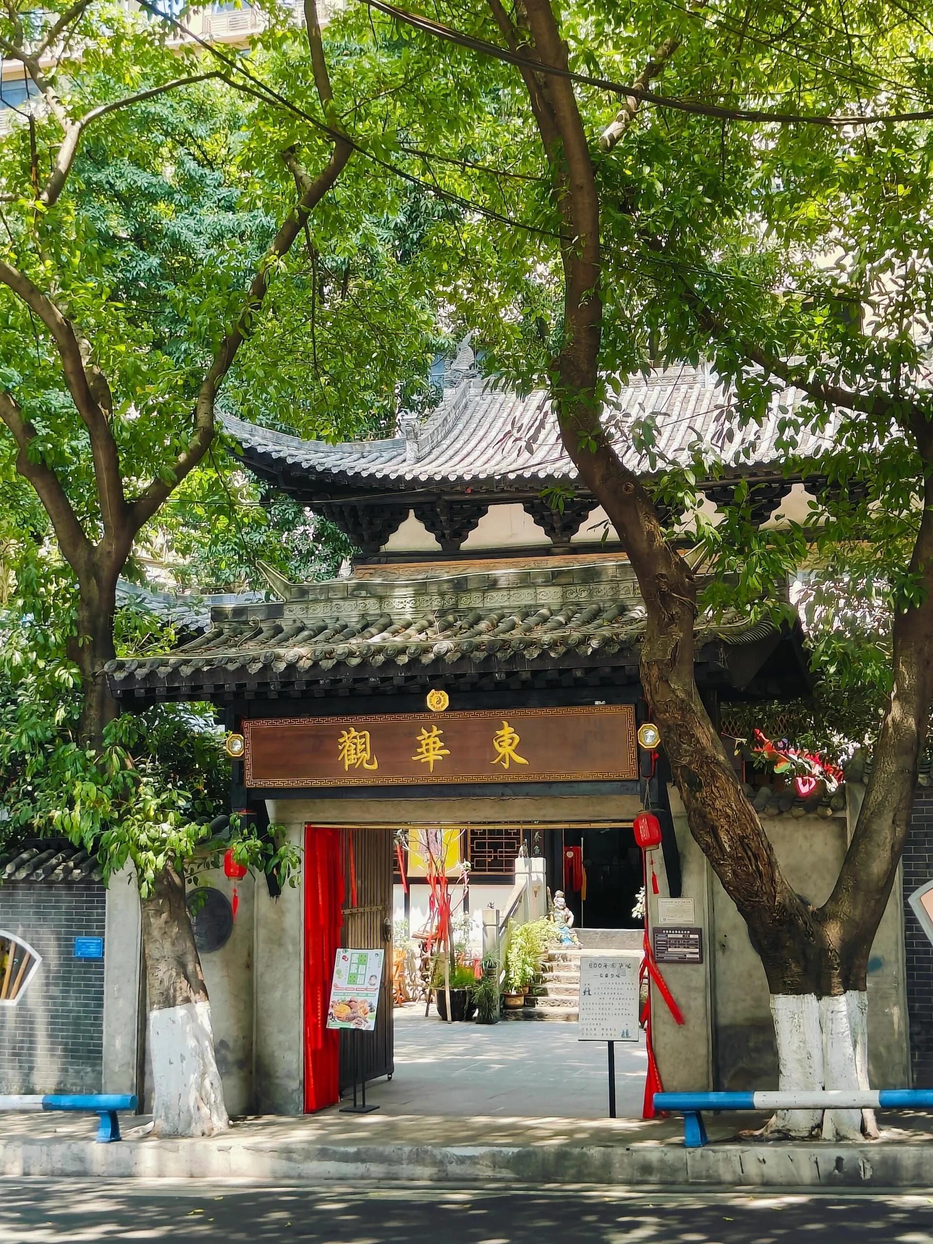 东华观的历史可以追溯到元代至元年间(1335~1340年)。根据民国二十八年(1939年)《巴县志》的记载,明朝天顺七年(1463年)和正德十一年(1516年)曾对其进行重修。观内曾有唐宋御制碑赞,而《蜀中名胜记》引用旧志提到:“城中有东华观。观后有东华十八洞,皆相通。”