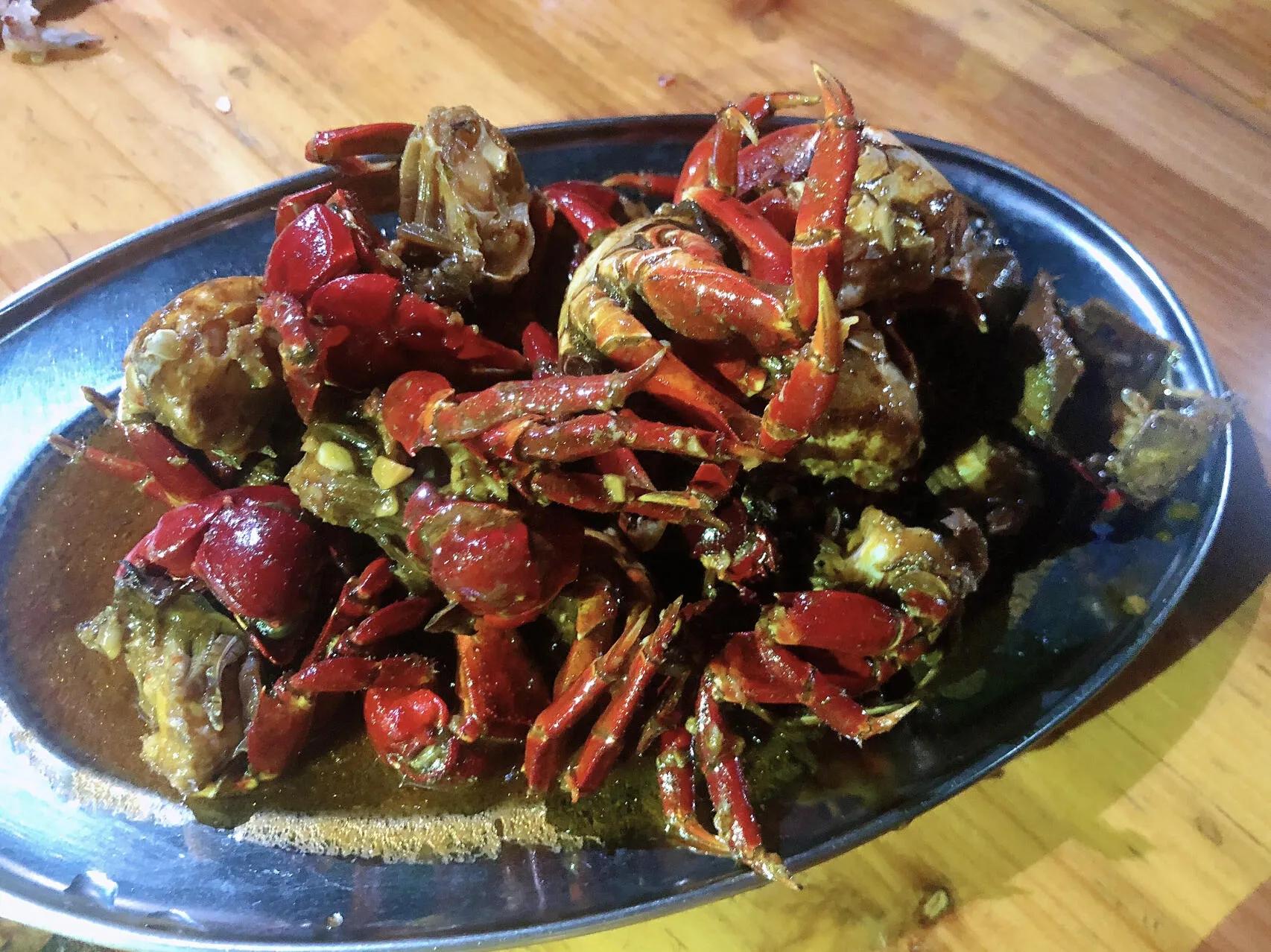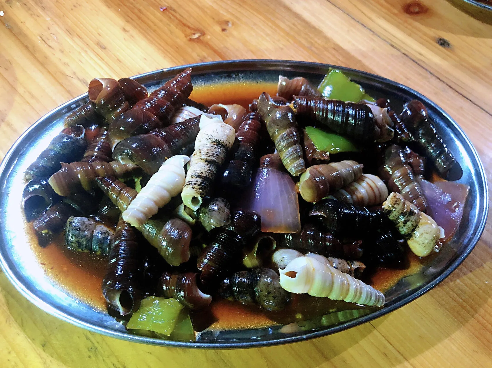 店里的招牌菜是蛮牛,其实是一种生长在红树林湿地洞穴中的螃蟹,是演丰最具特色的美食之一。酱油蛮牛是必点菜品,个大体肥,肉质紧实细腻,鲜美至极,是绝佳的下酒菜。