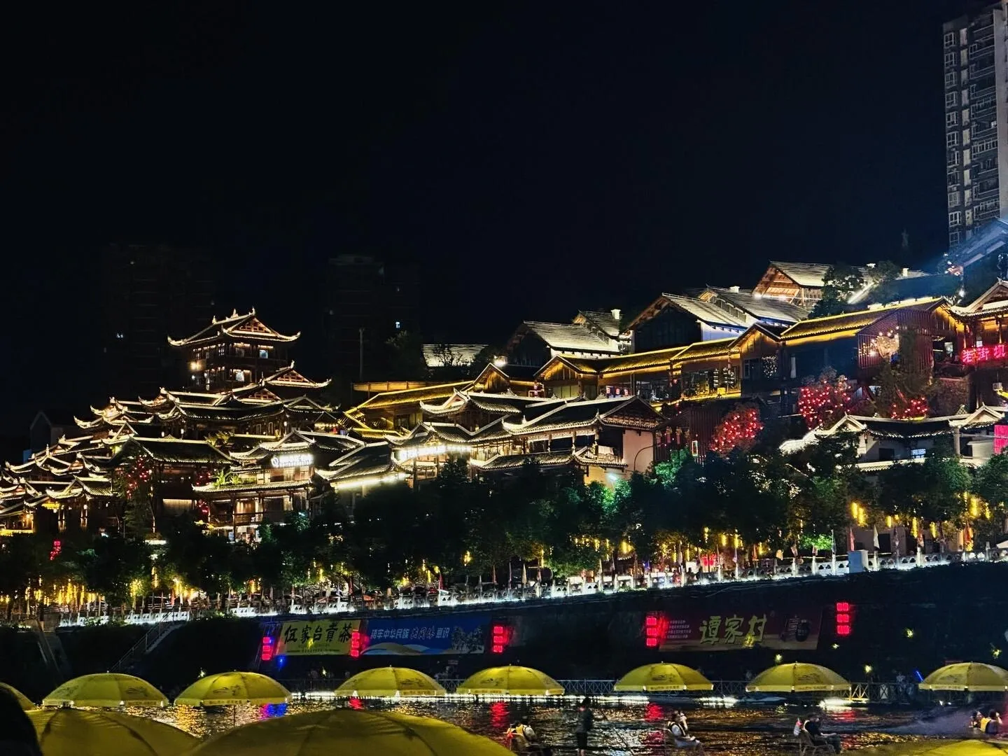 第二天,乘坐飞机和高铁抵达恩施。热情的地接朋友全程关注行程,安排司机提前到达车站接机,半小时内就顺利入住民宿。为了不浪费晚上的时间,临时增加了宣恩的行程。宣恩的夜景令人印象深刻,只是遗憾没能品尝当地有名的烤鱼。