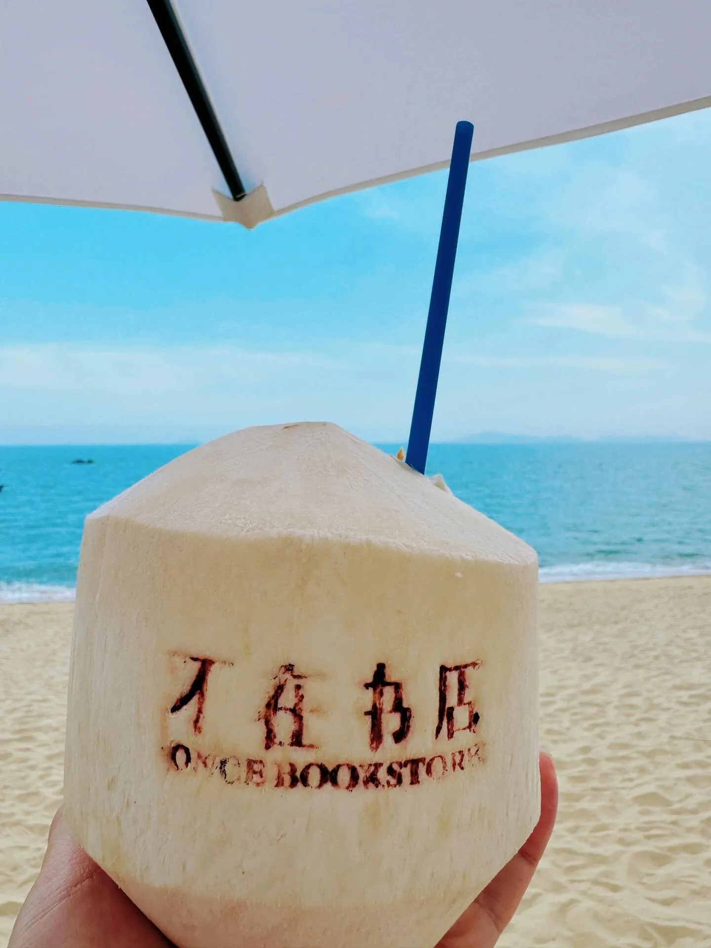 不在书店:有很多网红景点可以拍照,椰子水48元/个,用于拍照的道具。这里有一棵完整的树,但坐在树上拍照的人太多,所以就取一部分跟大海结合来拍。