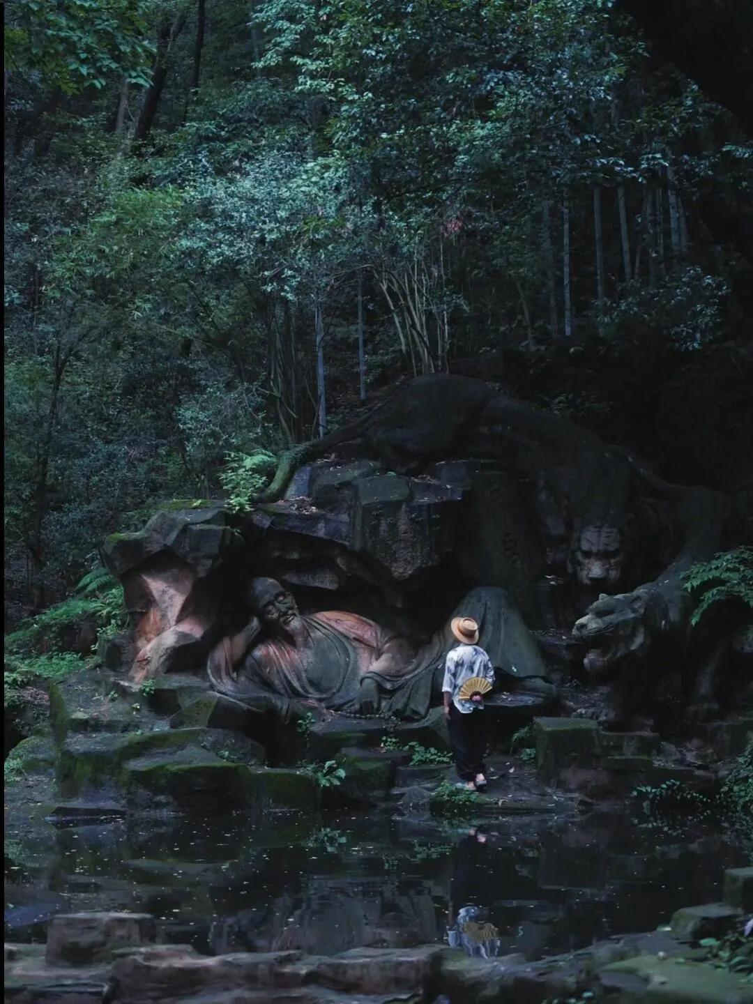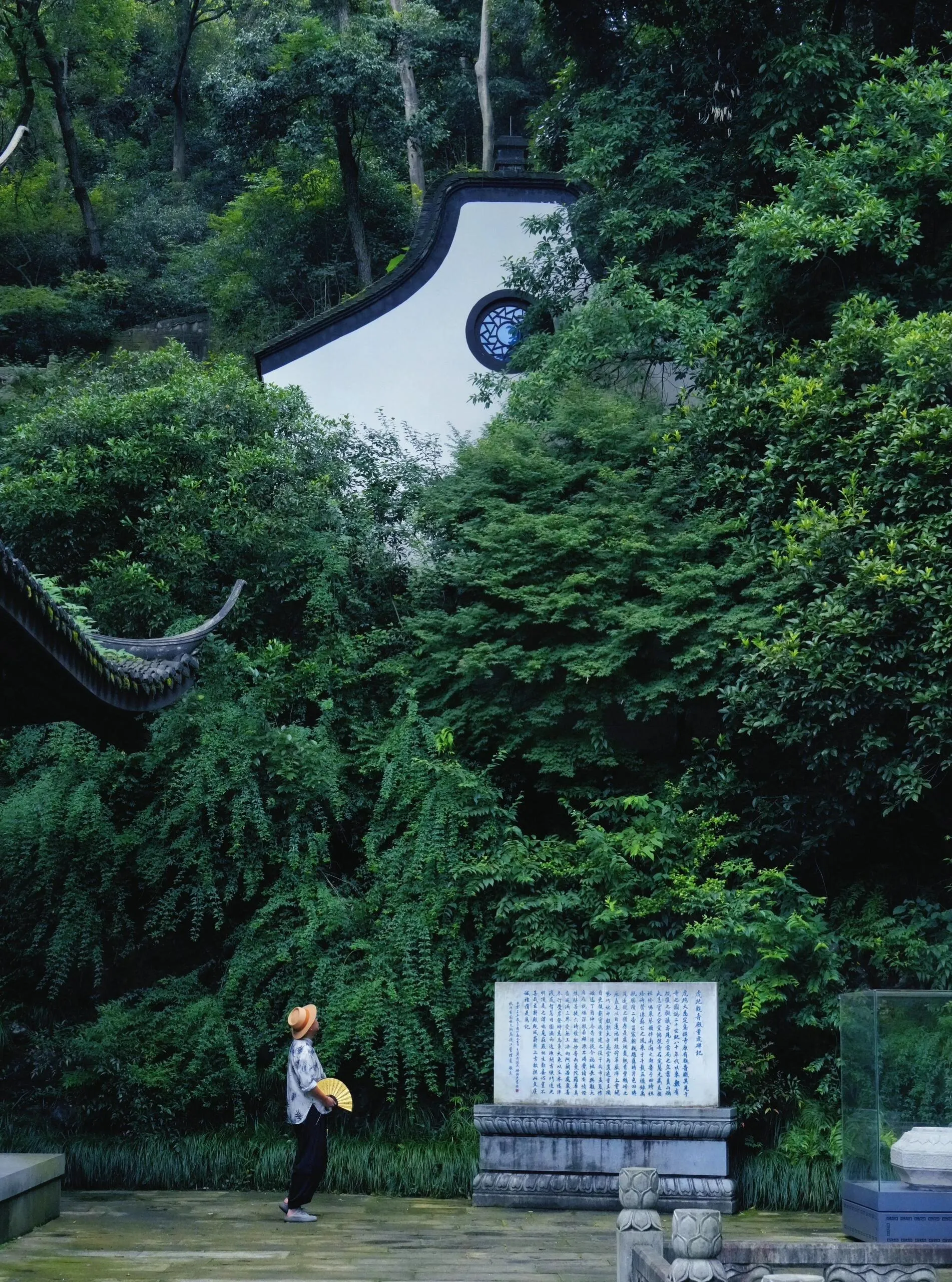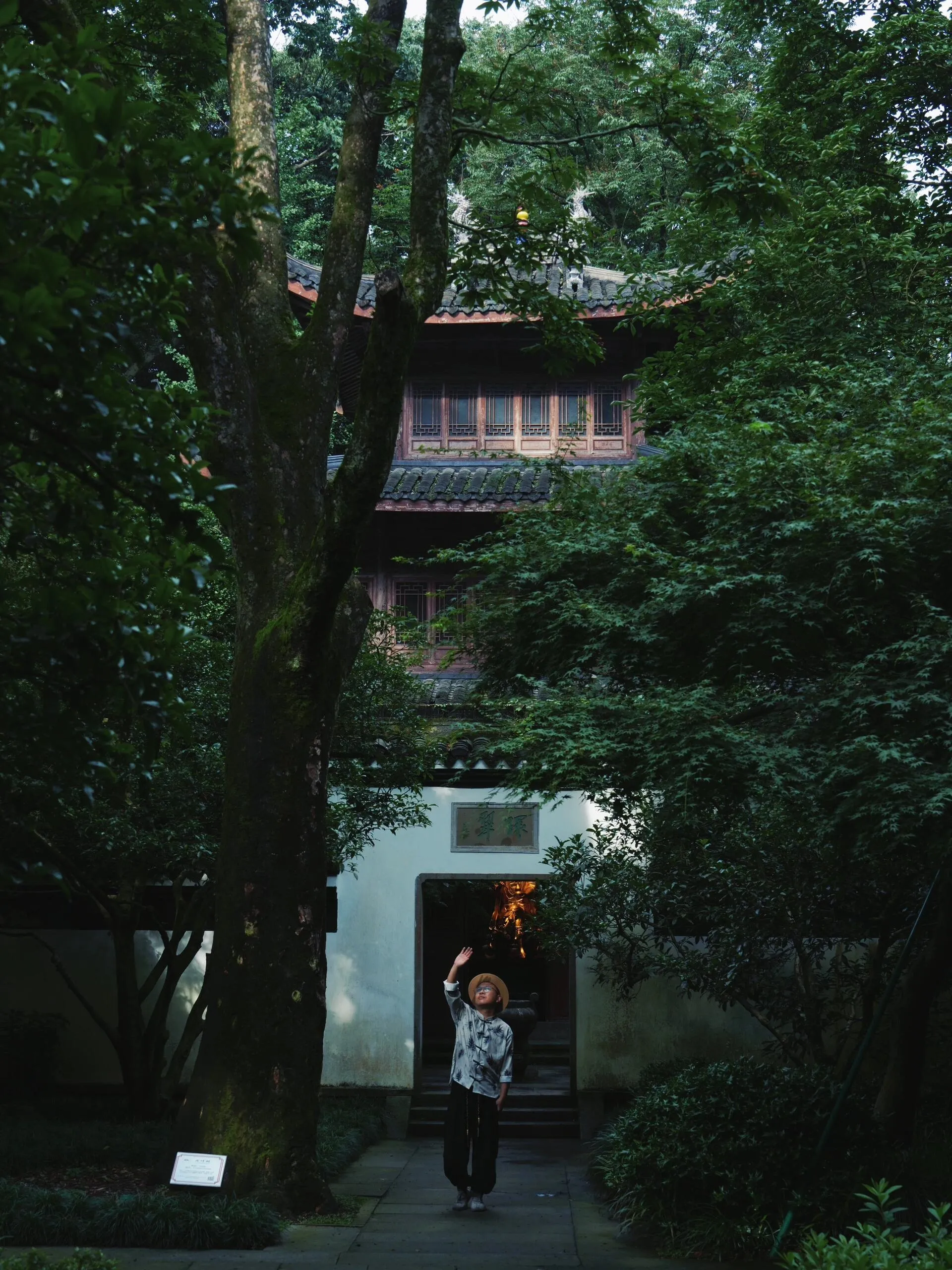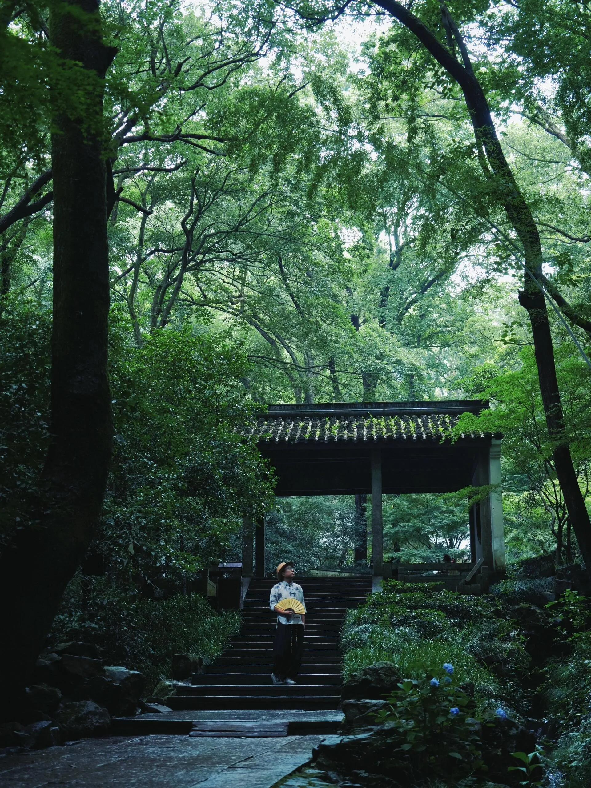 虎跑公园是杭州一处小众而静谧的景点 ,适合喜欢慢节奏、追求意境的游客前来游览。 这里的景色在雨天更显意境 ,亭台楼阁隐藏在树木之中,偶露的一角充满东方美学韵味,非常适合拍摄。