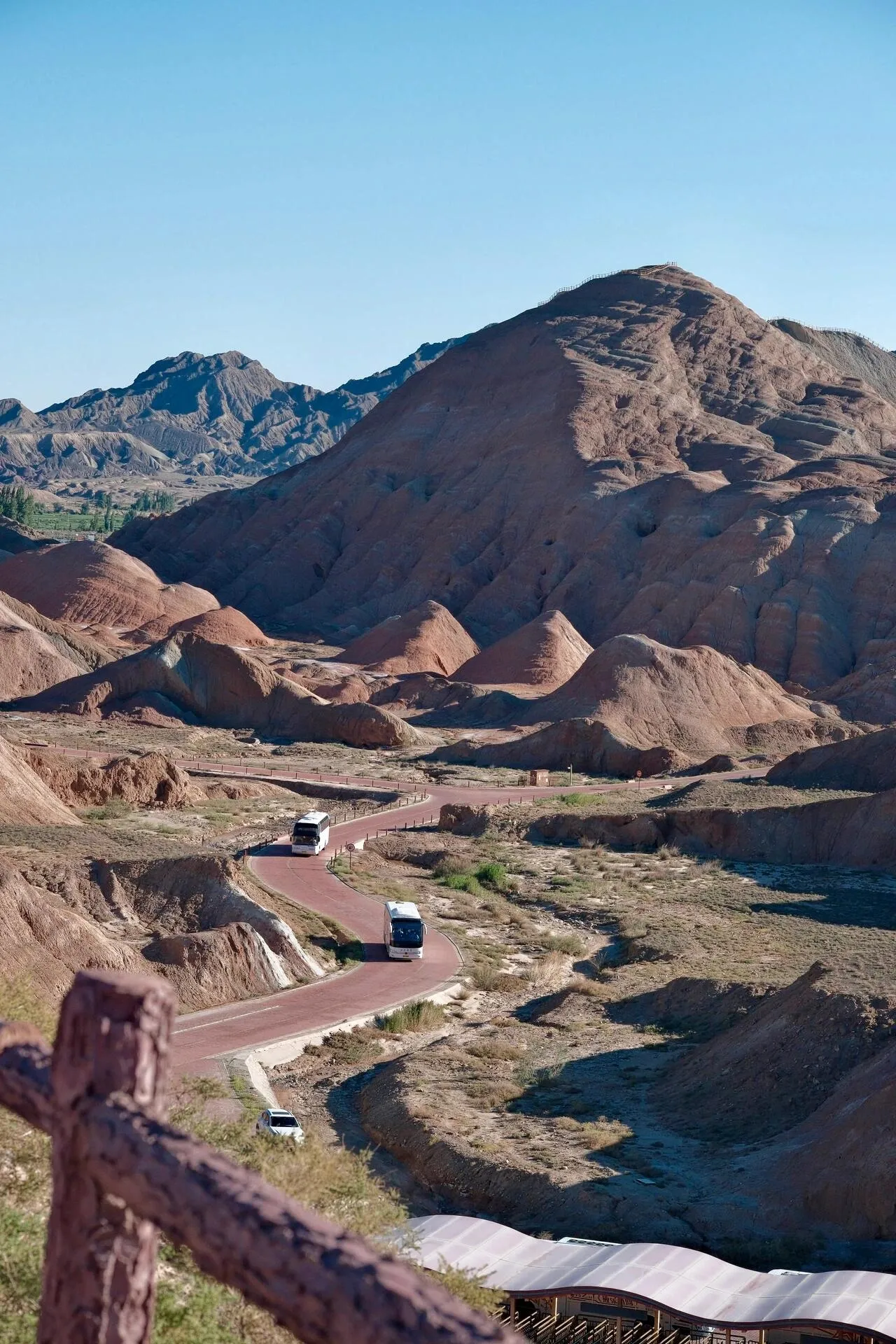 7:30抵达七彩丹霞景区。选择了普通游,门票93元,完全够用。全程有大巴车接送,在四个观景点都有充足时间下车拍照。晴天的七彩丹霞景色尤为壮观。